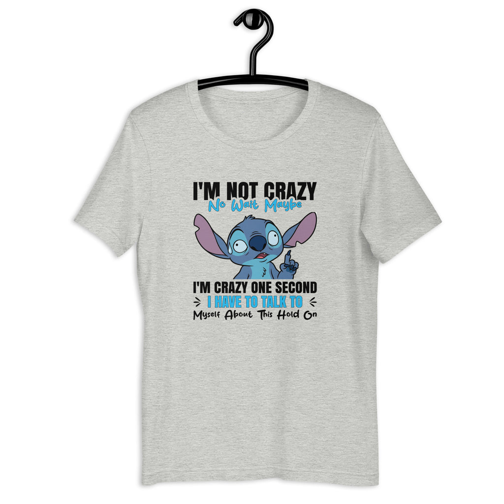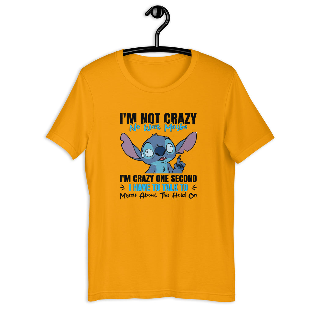 Let everyone know your inner dialogue has a mind of its own with the “I’M NOT CRAZY… NO WAIT MAYBE I’M CRAZY — ONE SECOND, I HAVE TO TALK TO MYSELF ABOUT THIS, HOLD ON” T-shirt. This tee perfectly captures that lovable mix of confusion, humor, and self-debating energy we all pretend we don’t have. It’s the ultimate anthem for people who argue with themselves, win the argument, and still walk away suspicious.