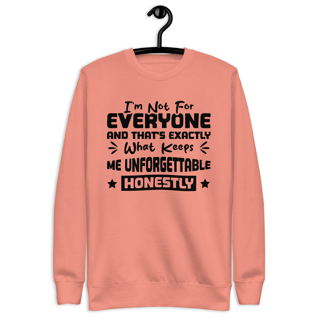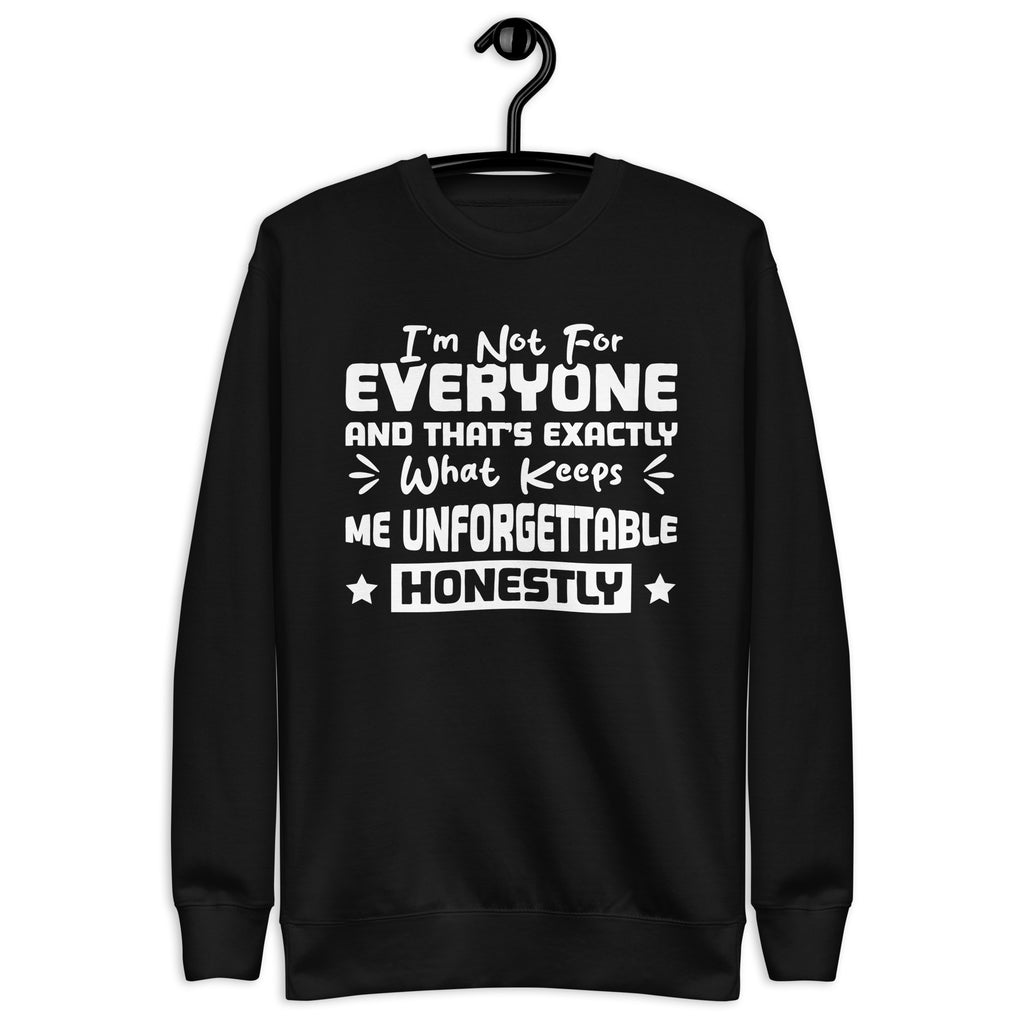 Unapologetic, unforgettable, and built to stand out — this “I’m Not for Everyone, and That’s Exactly What Keeps Me Unforgettable Honestly” sweatshirt is made for the ones who embrace being different on purpose. You’re not here to fit in, soften your edges, or shrink your shine — you’re here to be memorable, authentic, and boldly yourself.