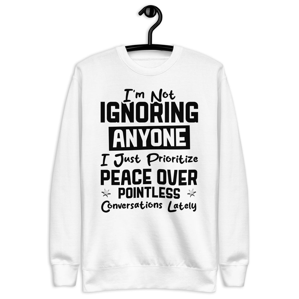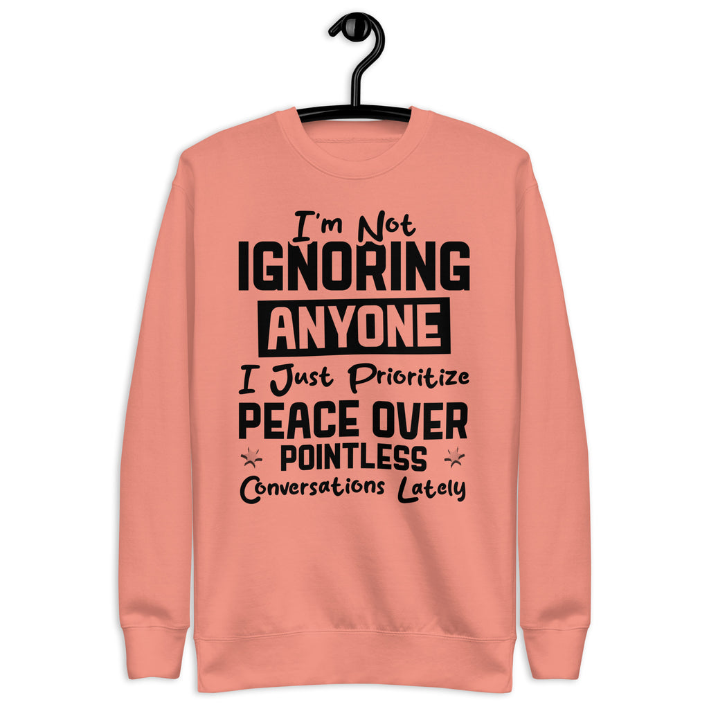 This “I’m Not Ignoring Anyone — I Just Prioritize Peace Over Pointless Conversations Lately” sweatshirt is made for the ones who’ve mastered the art of choosing calm over chaos. It’s the perfect blend of honesty and quiet confidence — a soft reminder that not every message deserves your energy and not every conversation deserves your presence.