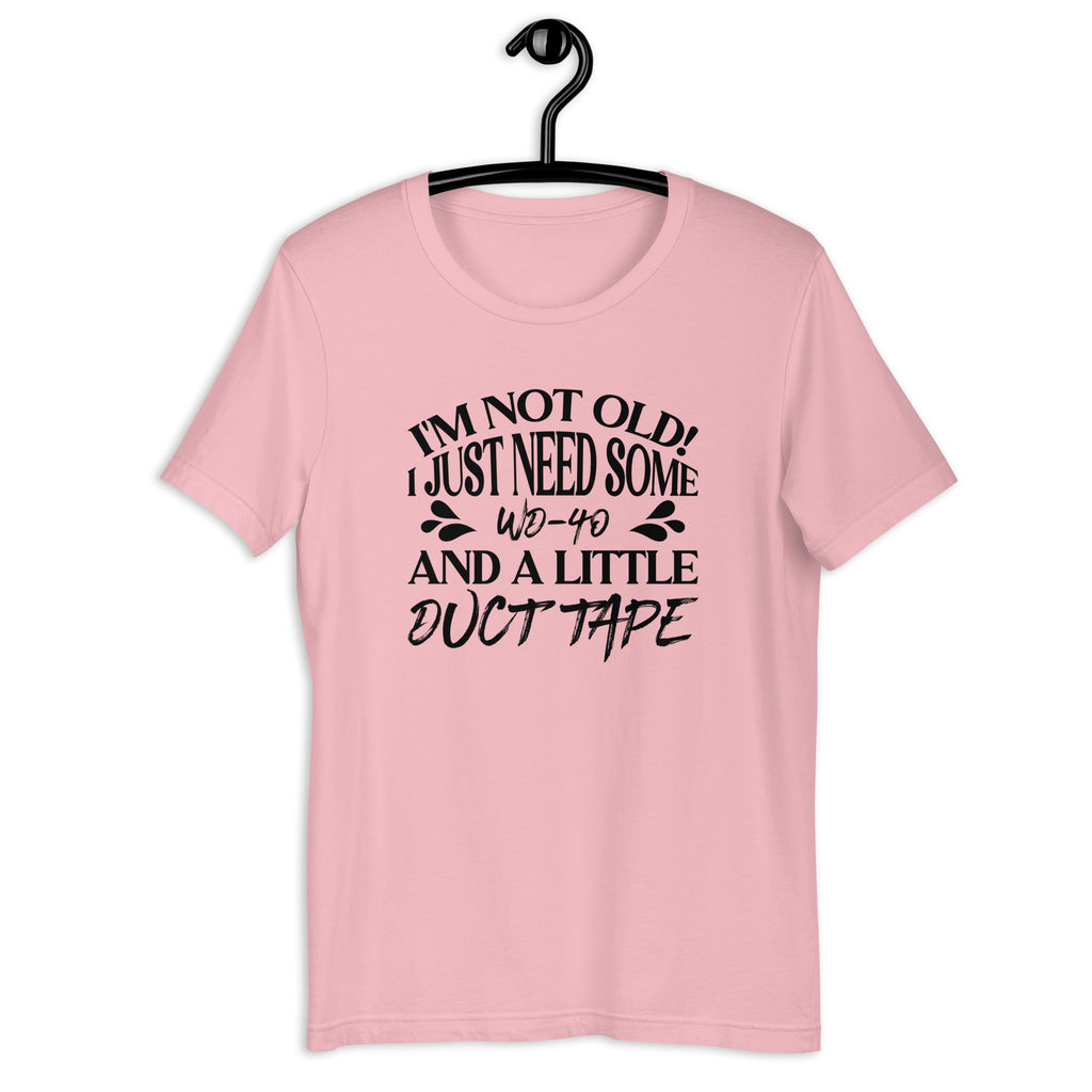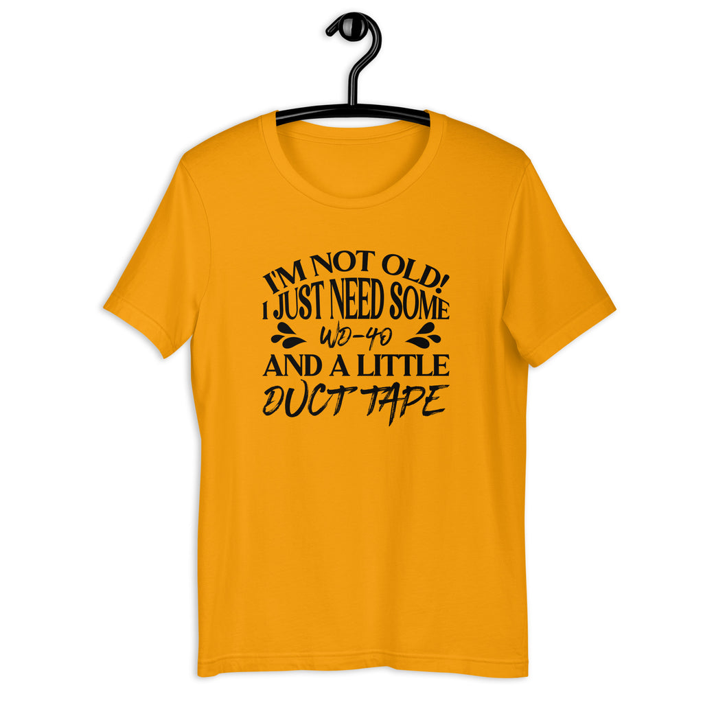 Keep the laughs rolling with this “I’m Not Old, I Just Need Some WD-40 and a Little Duct Tape” t-shirt. Funny, clever, and a bit self-deprecating, this tee is perfect for anyone who knows age is just a number—plus a few squeaks and creaks.