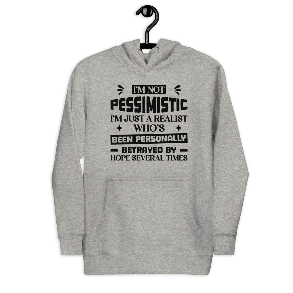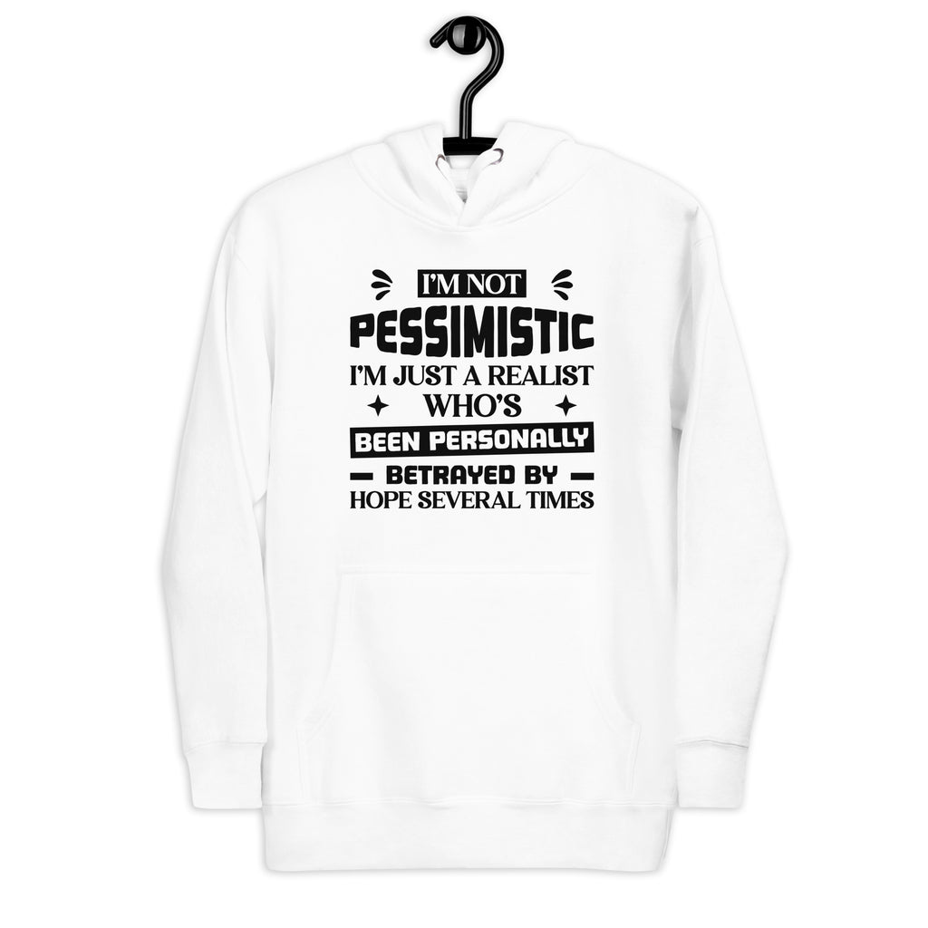 Grounded, honest, and a little battle-worn — this “I’m Not Pessimistic, I’m Just a Realist Who’s Been Personally Betrayed by Hope Several Times” hoodie is made for anyone who’s learned to expect reality instead of fairy tales. You’re not negative — you just have receipts, experience, and a history that taught you to read the fine print.