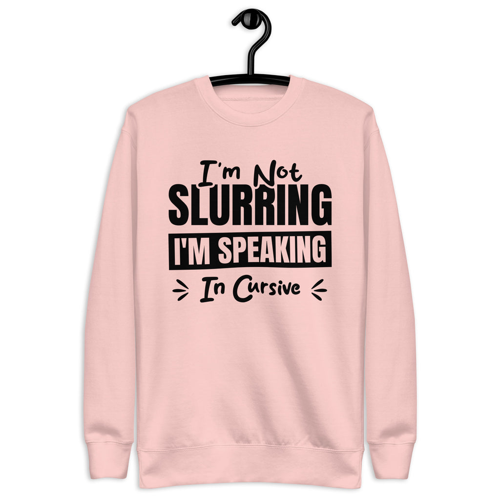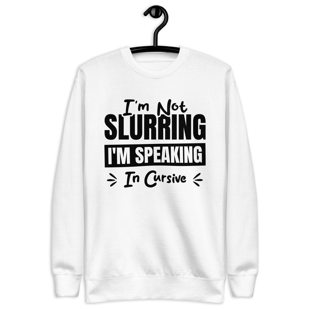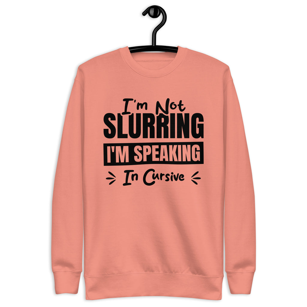 Witty, tipsy, and just refined enough to pretend it's intentional — this “I’m Not Slurring, I’m Speaking in Cursive” sweatshirt is for those who know a good time when they sip one. Whether you're two drinks deep, naturally dramatic, or just vibing with a little extra personality, this cozy layer lets everyone know your speech isn’t messy — it’s elegantly stylized.