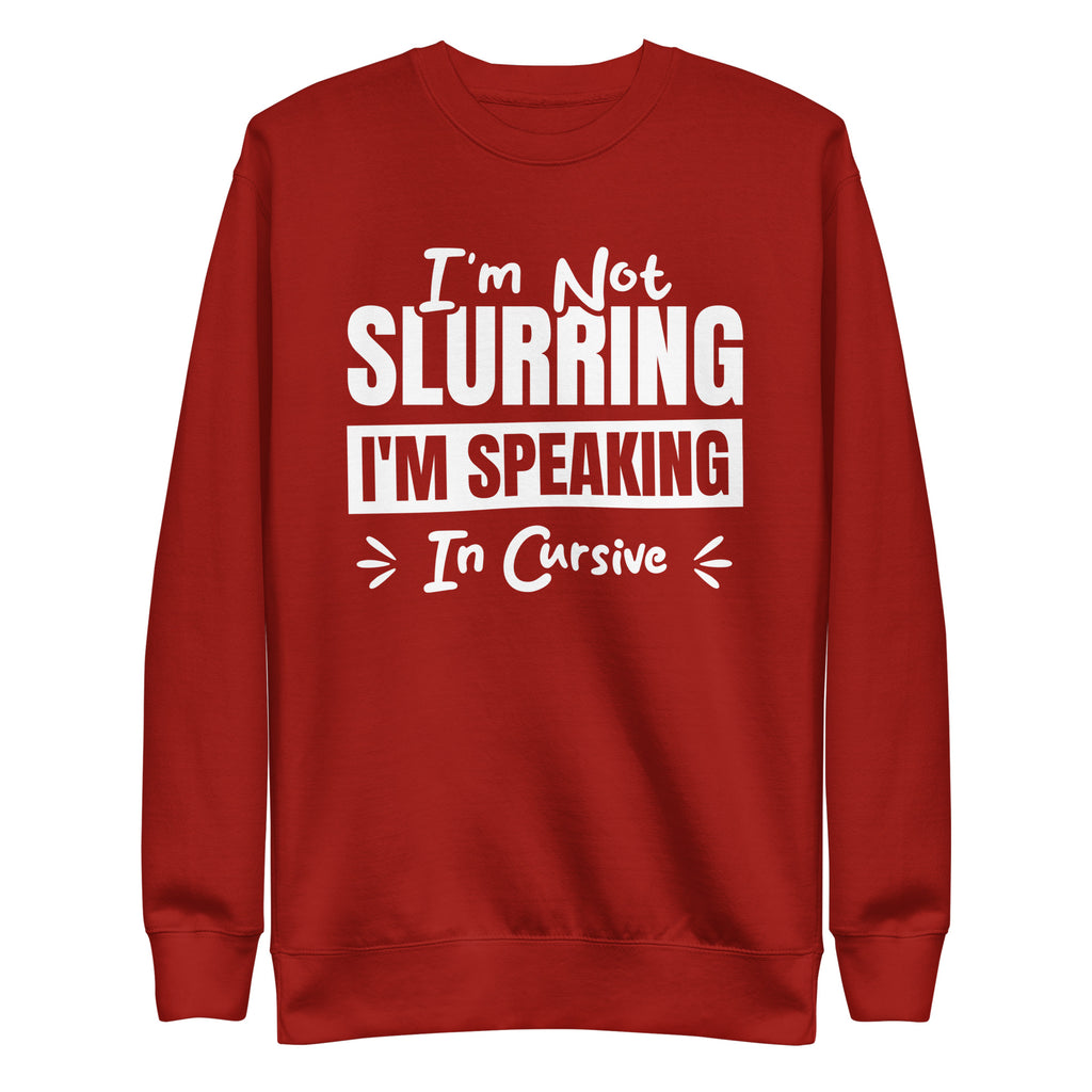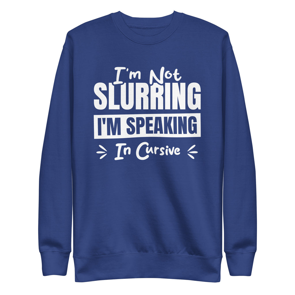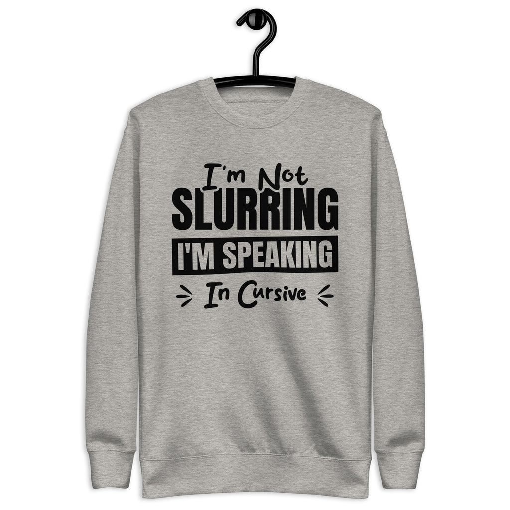 Witty, tipsy, and just refined enough to pretend it's intentional — this “I’m Not Slurring, I’m Speaking in Cursive” sweatshirt is for those who know a good time when they sip one. Whether you're two drinks deep, naturally dramatic, or just vibing with a little extra personality, this cozy layer lets everyone know your speech isn’t messy — it’s elegantly stylized.