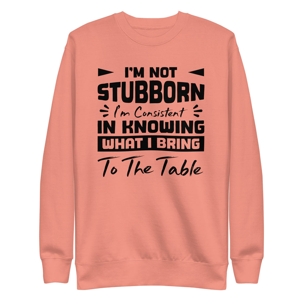 This “I’m Not Stubborn — I’m Consistent in Knowing What I Bring to the Table” sweatshirt is for the ones who stand firm in their worth. Grounded, confident, and unapologetically self-aware, it’s made for those who don’t mistake self-respect for stubbornness — they just know their value and refuse to settle.