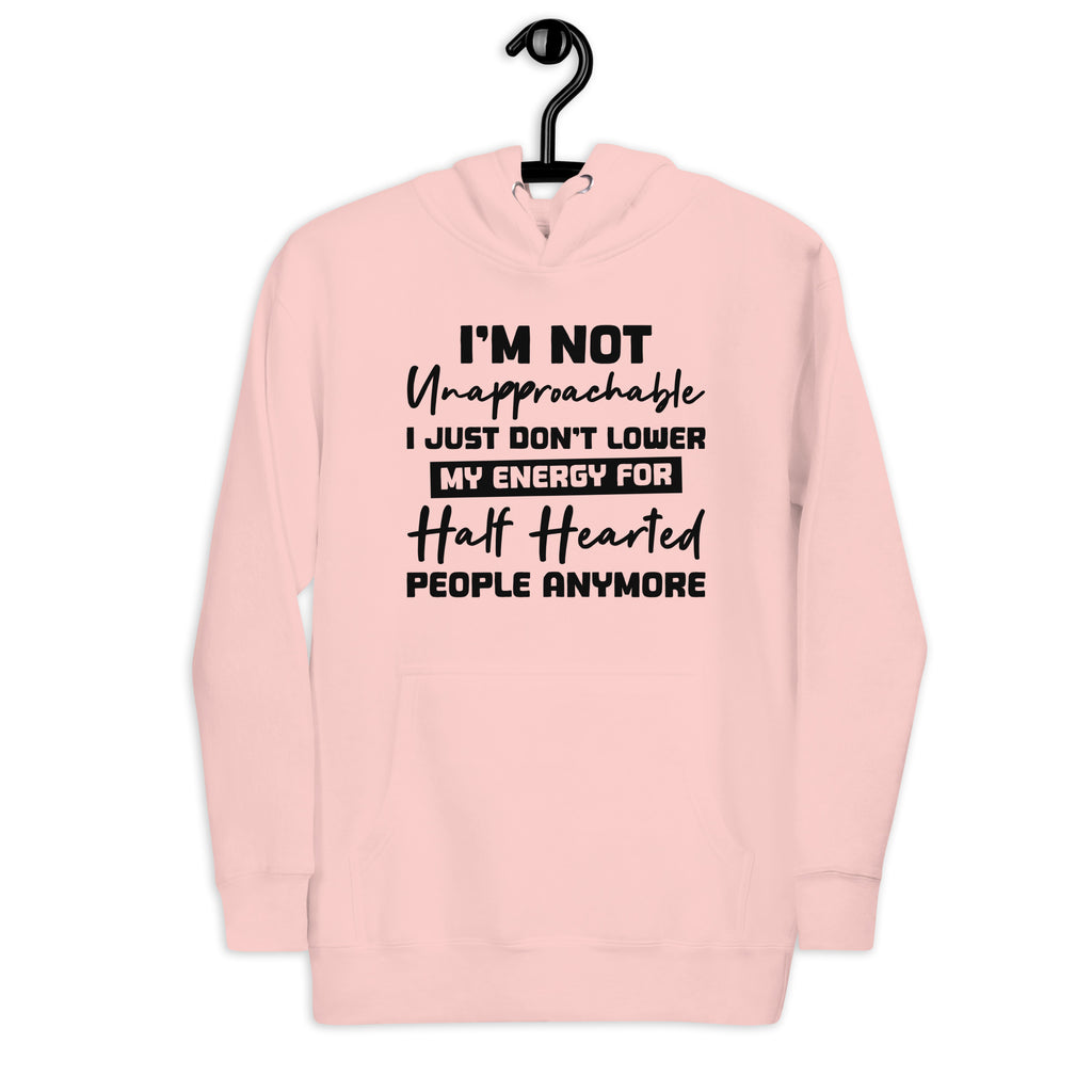 Calm, grounded, and done entertaining anything less than genuine — this “I’m Not Unapproachable, I Just Don’t Lower My Energy for Half-Hearted People Anymore” hoodie is made for those who protect their peace like it’s priceless. You’re not distant — you’re selective, intentional, and unavailable to anything that drains instead of adds.