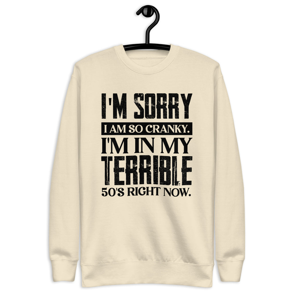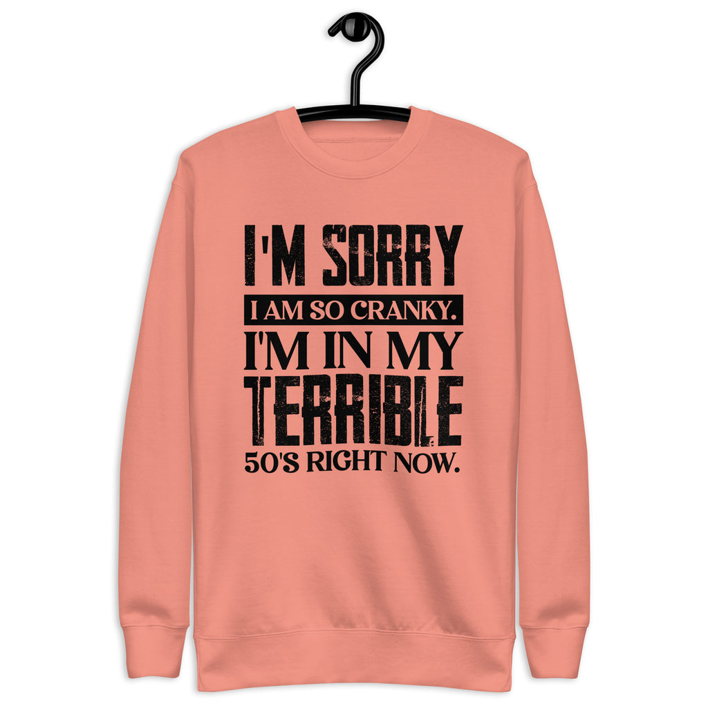 Warning: Proceed with caffeine and caution. The “I’m Sorry I’m So Cranky — I’m in My Terrible 50’s Right Now” sweatshirt is the perfect blend of humor, honesty, and midlife mood swings. For anyone who’s been through it, is going through it, or is about to — this cozy sweatshirt says what we’re all thinking but don’t always admit out loud.