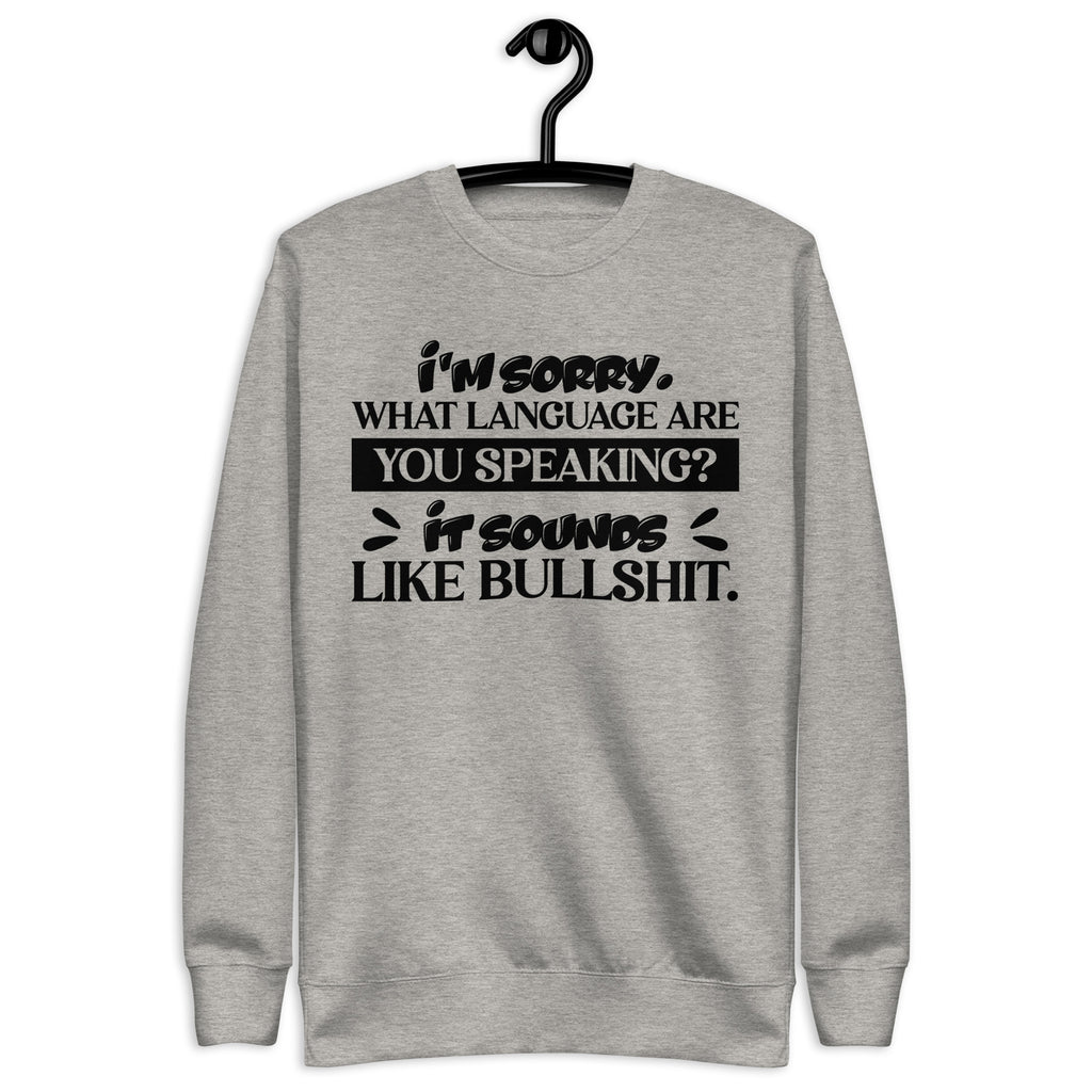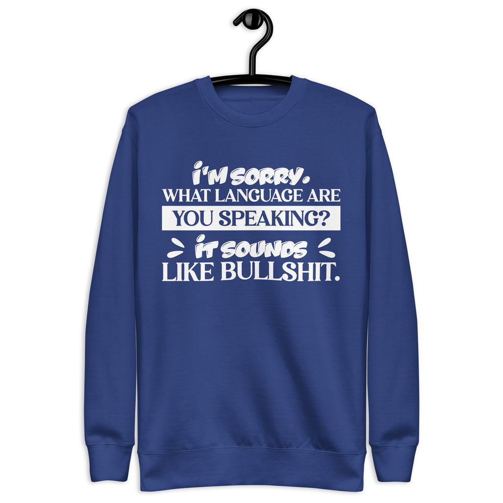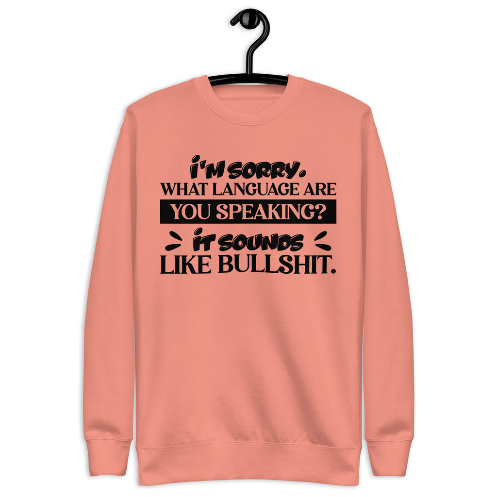 Bring your sarcasm to life with the “I’m Sorry, What Language Are You Speaking? It Sounds Like Bullshit” sweatshirt. Perfect for anyone who doesn’t have time for nonsense, this bold and funny design lets your outfit do the talking. Equal parts cozy and cutting, it’s a must-have for those who speak fluent sarcasm.