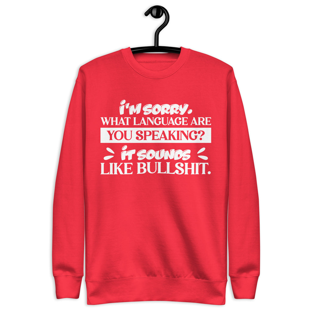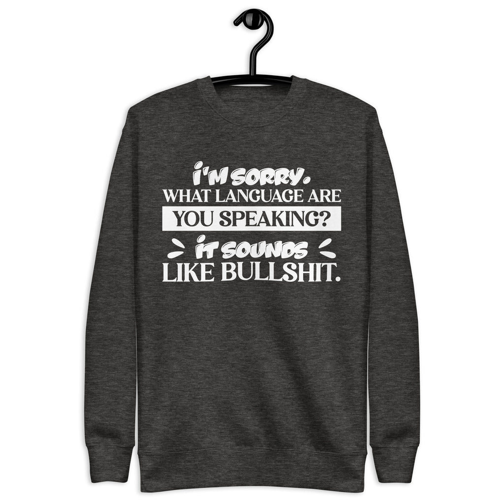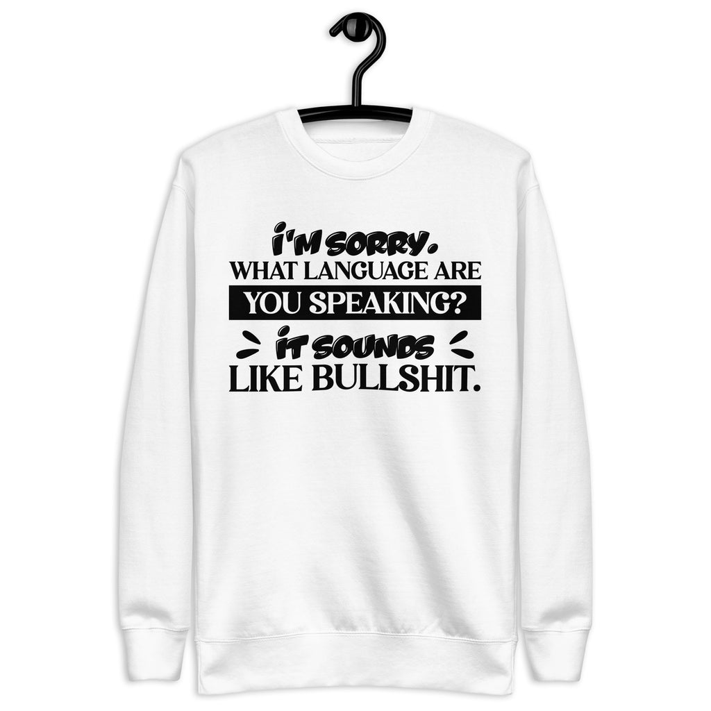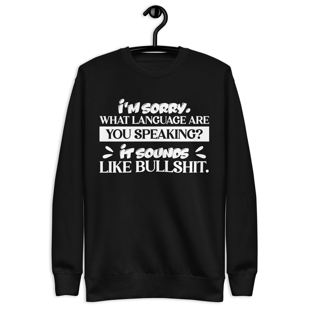 Bring your sarcasm to life with the “I’m Sorry, What Language Are You Speaking? It Sounds Like Bullshit” sweatshirt. Perfect for anyone who doesn’t have time for nonsense, this bold and funny design lets your outfit do the talking. Equal parts cozy and cutting, it’s a must-have for those who speak fluent sarcasm.