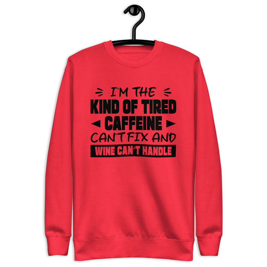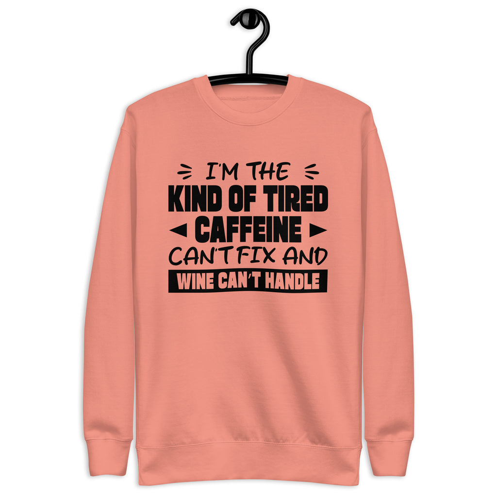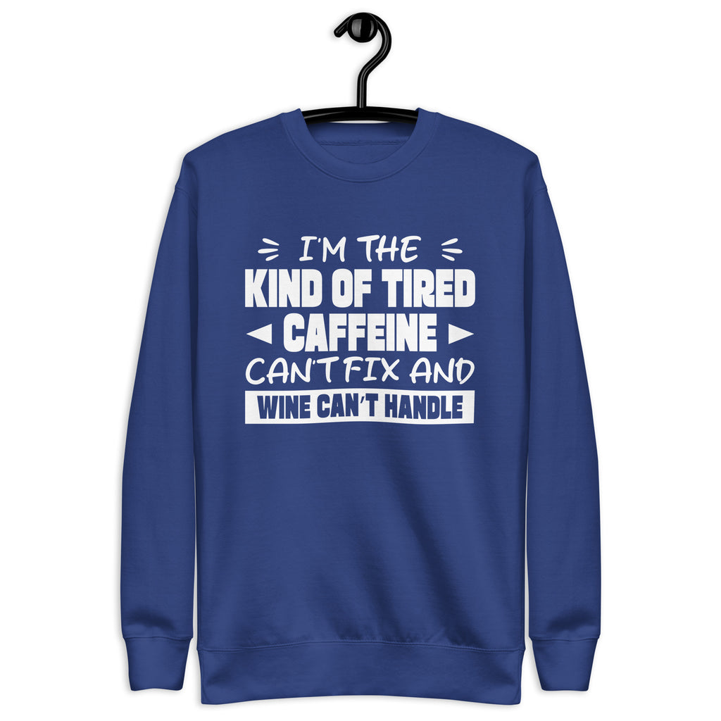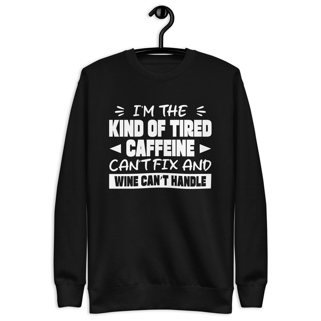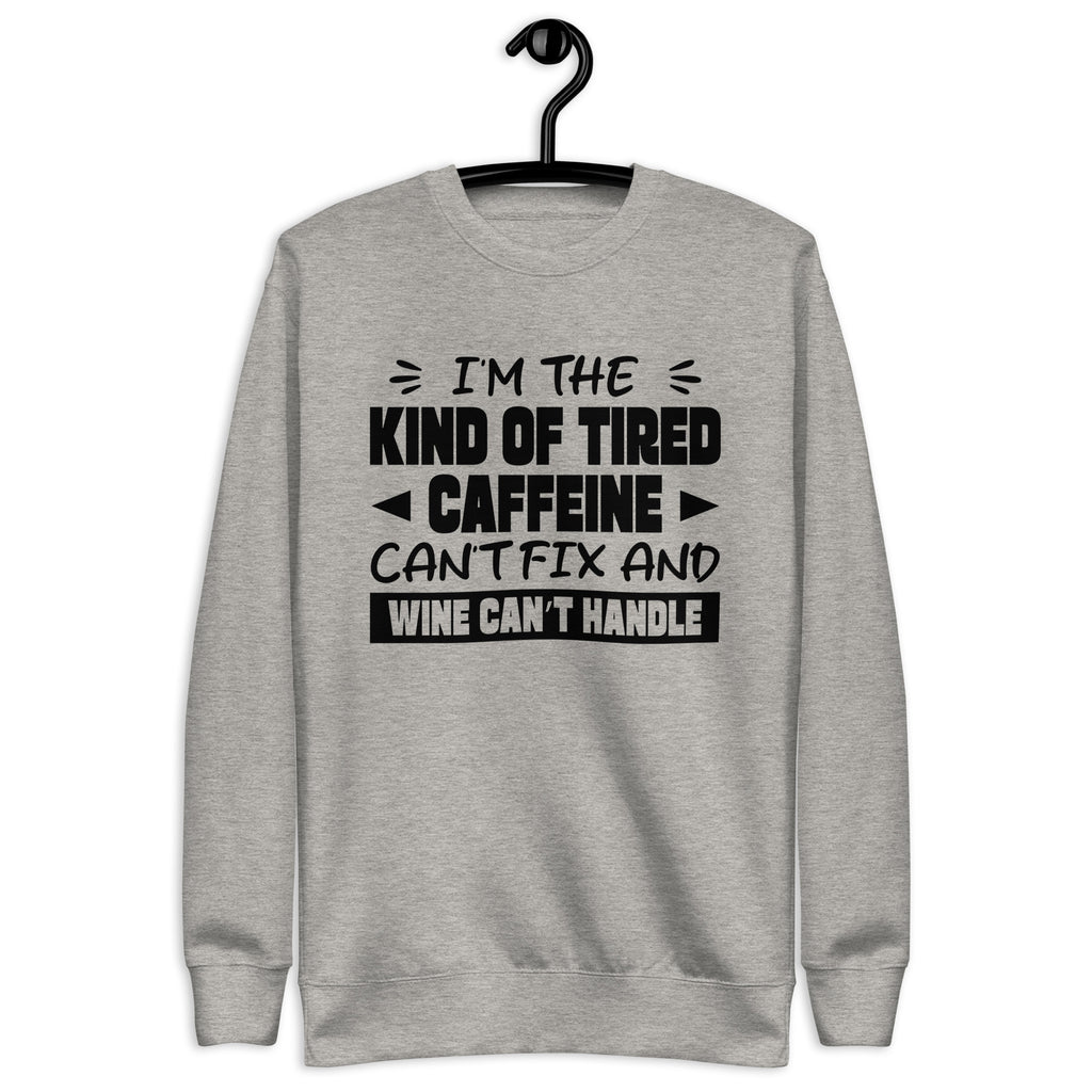 This “I’m the Kind of Tired Caffeine Can’t Fix and Wine Can’t Handle” sweatshirt is for the emotionally exhausted, mentally done, and spiritually unavailable. It’s cozy proof that some levels of fatigue go beyond espresso shots and merlot refills — the kind that only silence, pajamas, and zero responsibilities can touch.