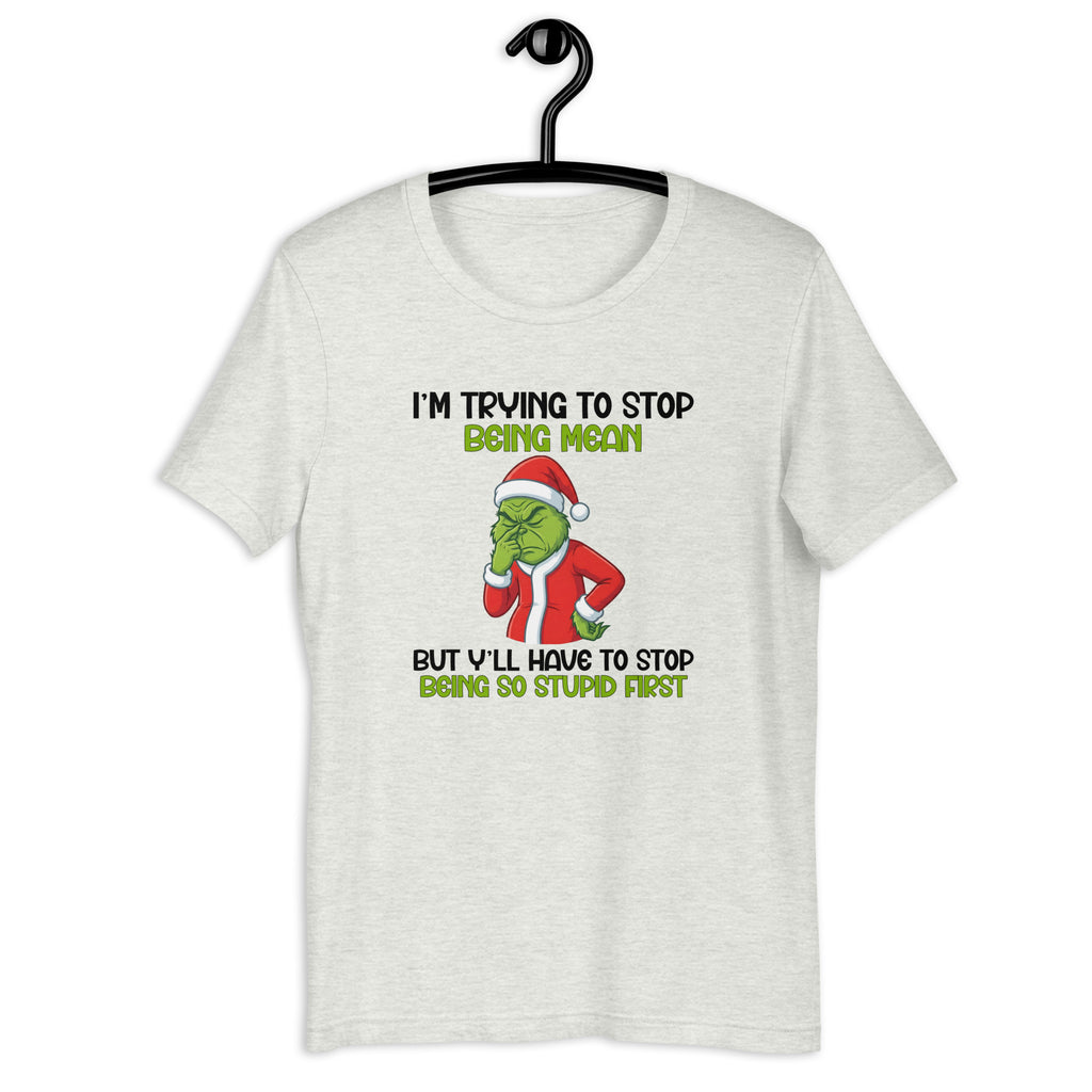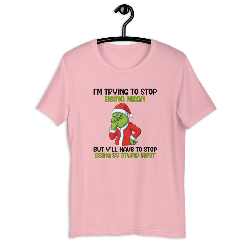 Let everyone know your patience has limits — and your humor is sharp — with the “I’M TRYING TO STOP BEING MEAN, BUT Y’ALL HAVE TO STOP BEING SO STUPID FIRST” T-shirt. This tee delivers the perfect mix of sass, honesty, and unapologetic attitude, calling out nonsense with a wink, a laugh, and zero hesitation.