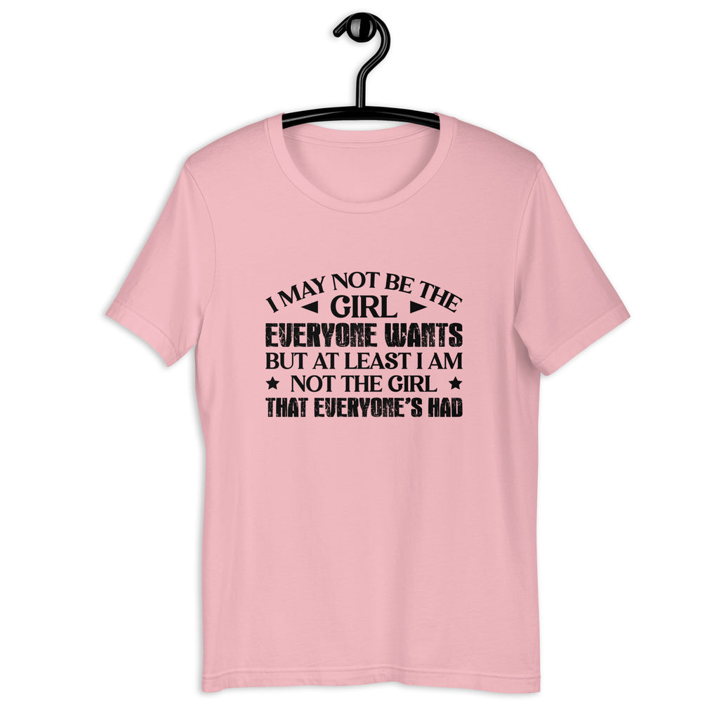 Celebrate your unapologetic confidence with the “I May Not Be the Girl Everyone Wants, But At Least I’m Not the Girl Everyone’s Had” T-shirt. Perfect for those who embrace their individuality and refuse to play by anyone else’s rules, this tee is all about owning your unique vibe with a side of fearless attitude.