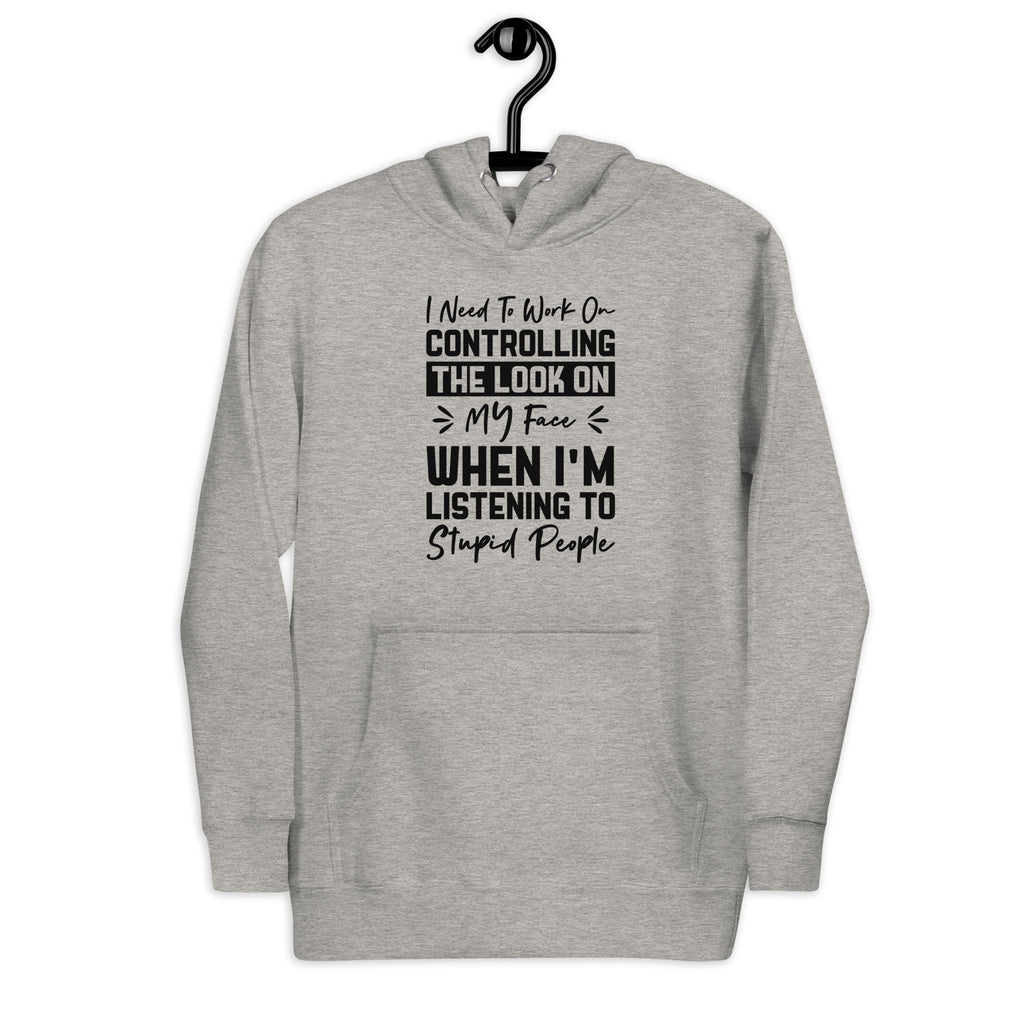 Keep it real (and keep your face in check… maybe) with this “I Need to Work on Controlling the Look on My Face When I’m Listening to Stupid People” hoodie. Perfect for anyone whose expressions speak louder than words, this hilarious hoodie is all about that unfiltered honesty we can all relate to.