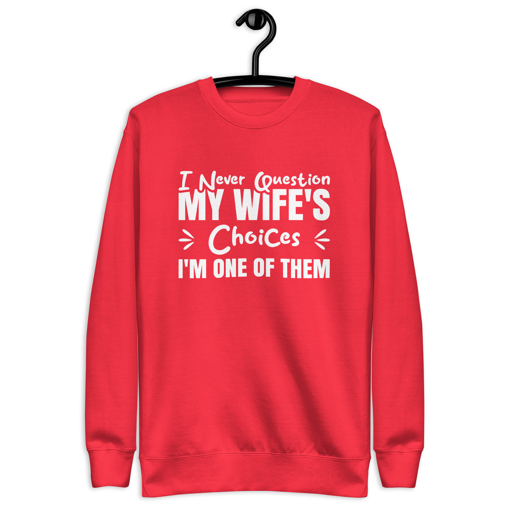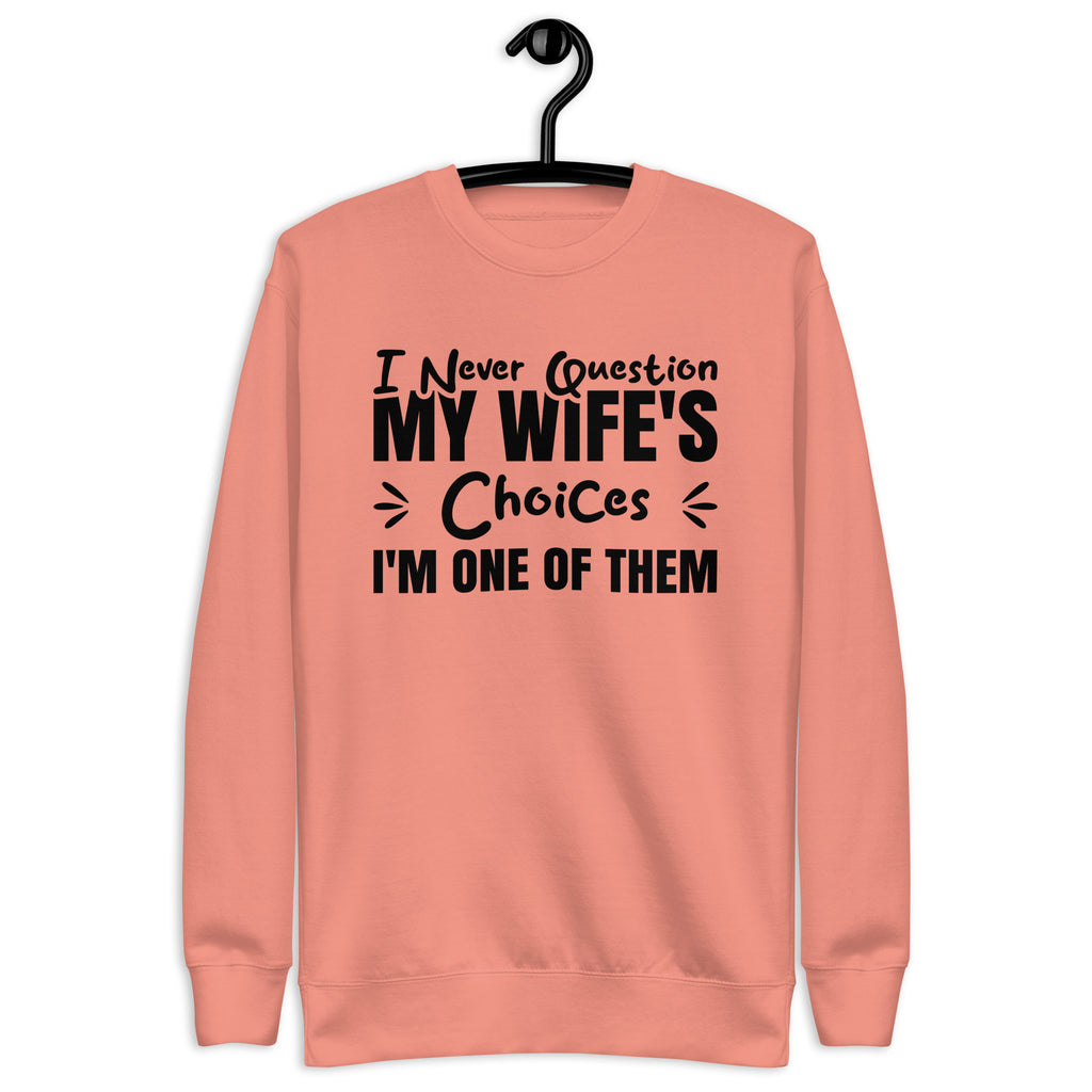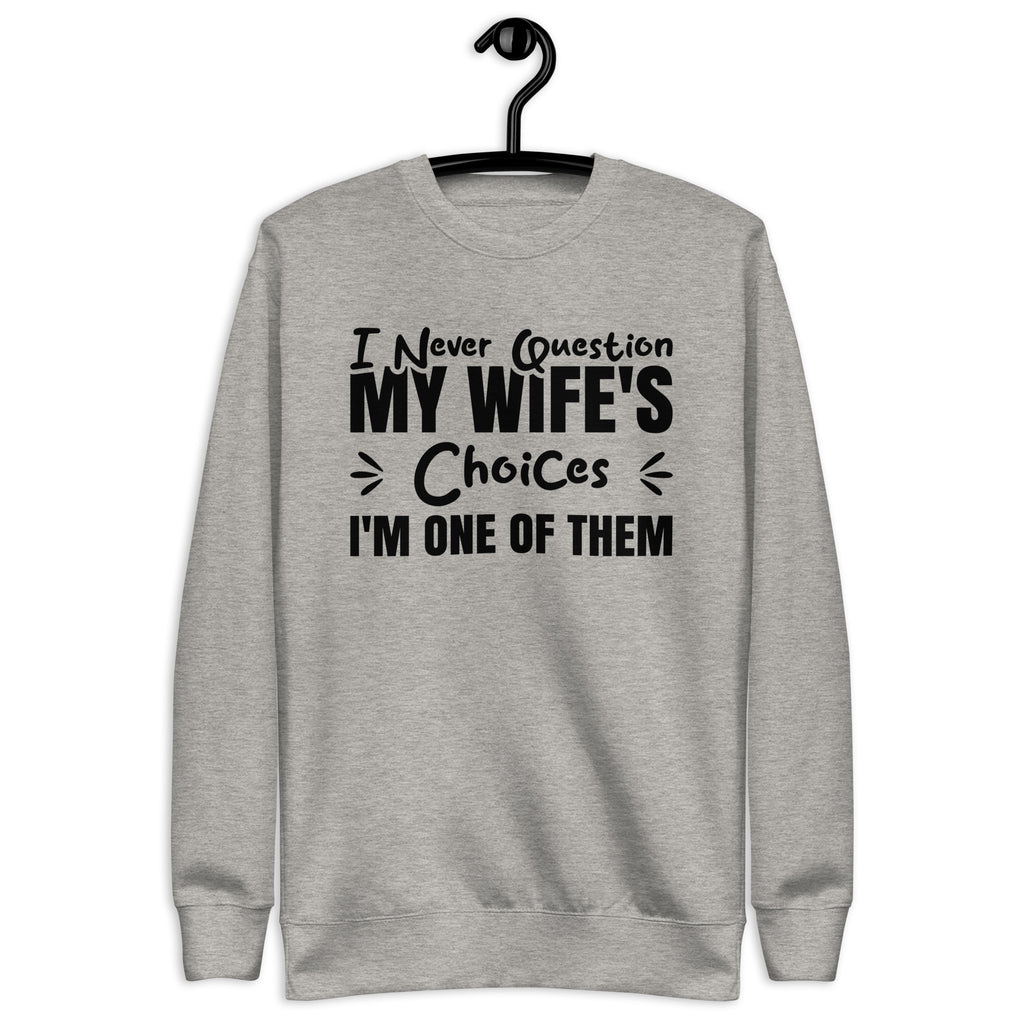 Witty, confident, and proudly self-aware. The “I Never Question My Wife’s Choices — I’m One of Them” sweatshirt is the perfect mix of humor and charm, celebrating marriage with a playful dose of sarcasm. It’s a lighthearted way to show love, loyalty, and just enough self-roast to keep things honest.