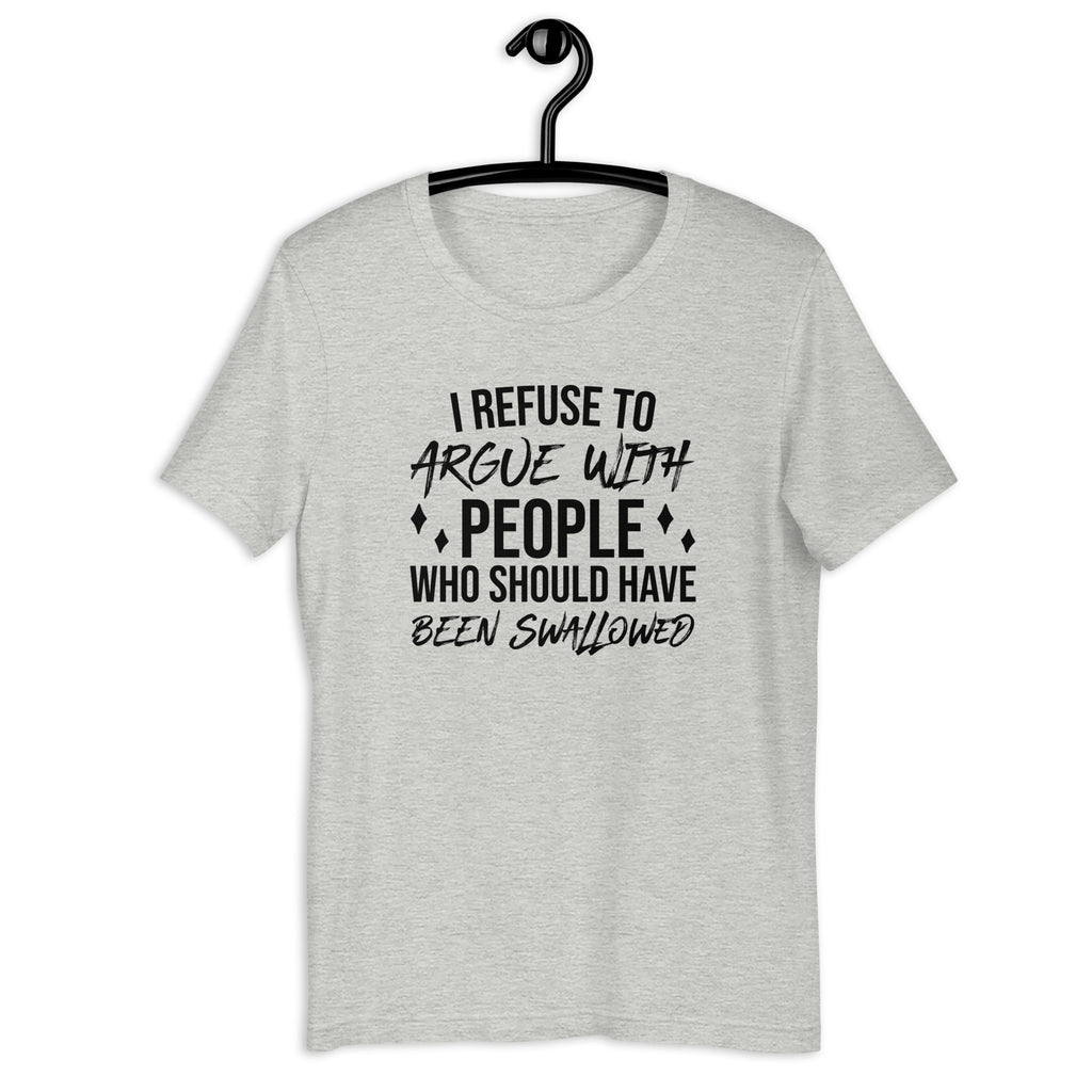 Brutally honest and zero filter. The “I Refuse to Argue With People That Should Have Been Swallowed” t-shirt is savage humor at its finest. Perfect for anyone who’s tired of pointless debates and wants their shirt to do the talking.