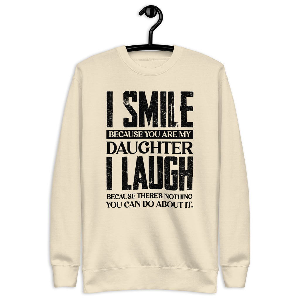 Celebrate the joy (and mischief) of parenthood with the “I Smile Because You Are My Daughter, I Laugh Because There Is Nothing You Can Do About It” sweatshirt. Equal parts heartfelt and hilarious, this cozy piece perfectly captures the playful bond between parents and daughters. It’s a sweet reminder of love, mixed with just enough sass to keep things fun.