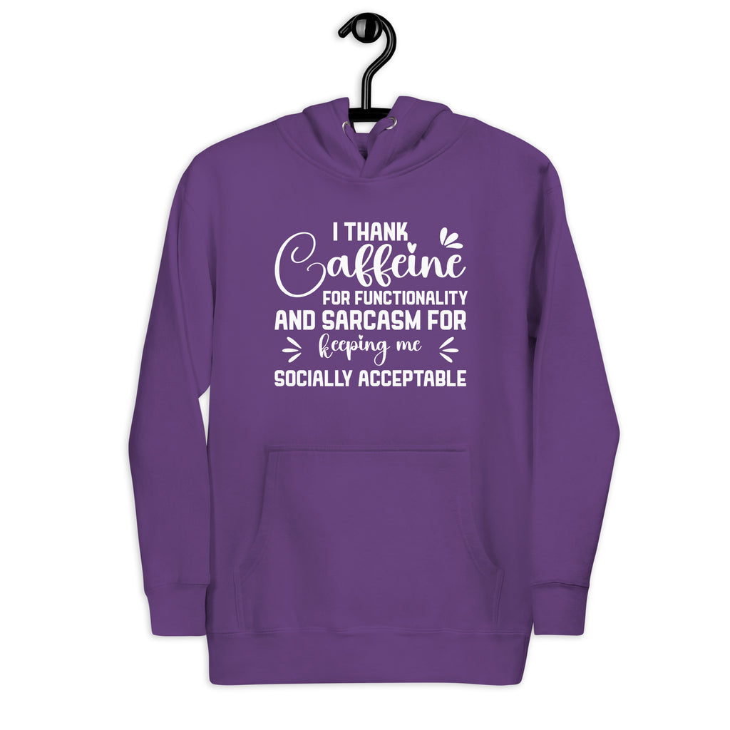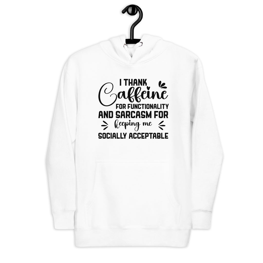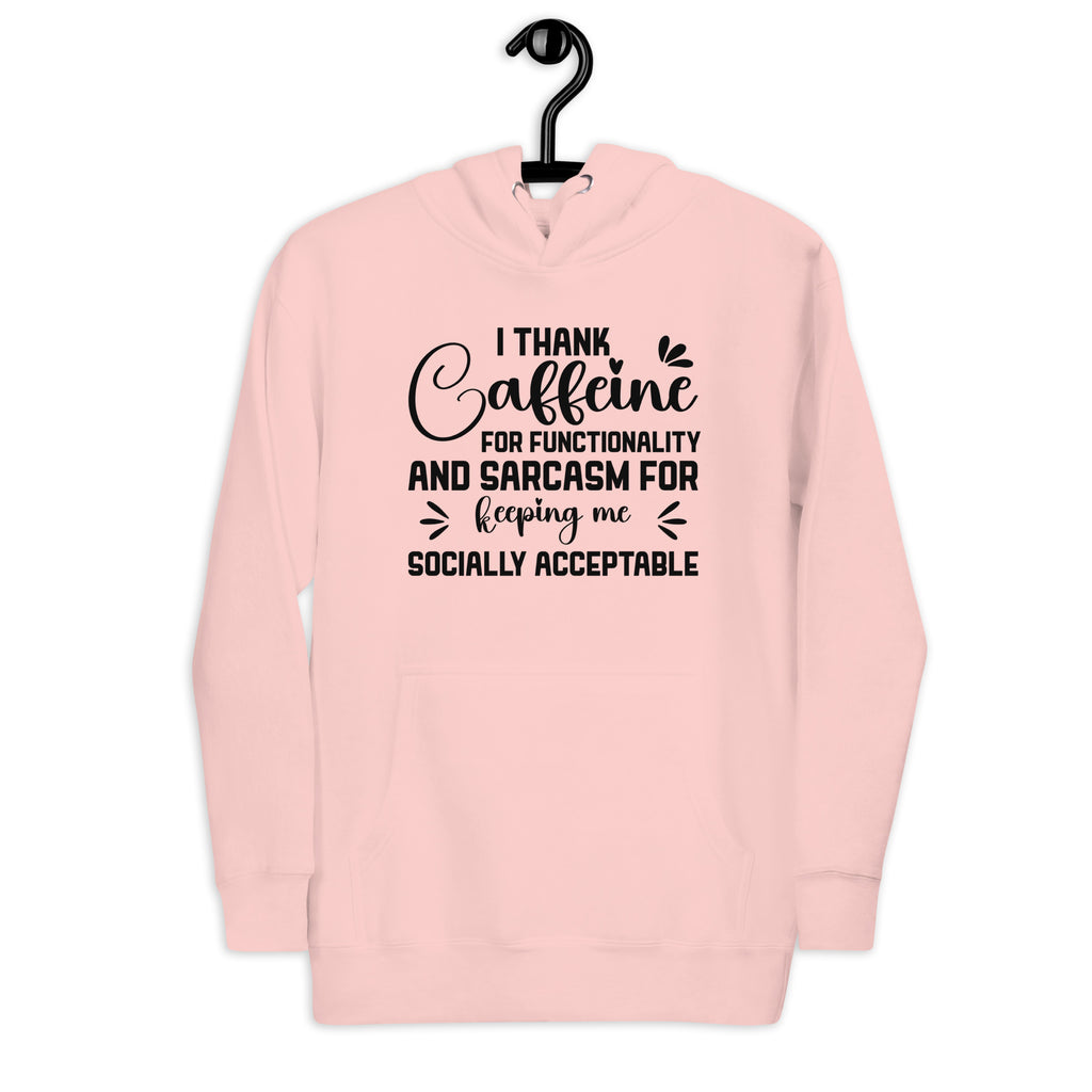 Kickstart your vibe with this “I Thank Caffeine for Functionality and Sarcasm for Keeping Me Socially Acceptable” hoodie — the perfect uniform for anyone running on equal parts espresso and attitude. If your personality runs 50% caffeine, 50% sarcasm, and 100% honesty, this one’s made for you.