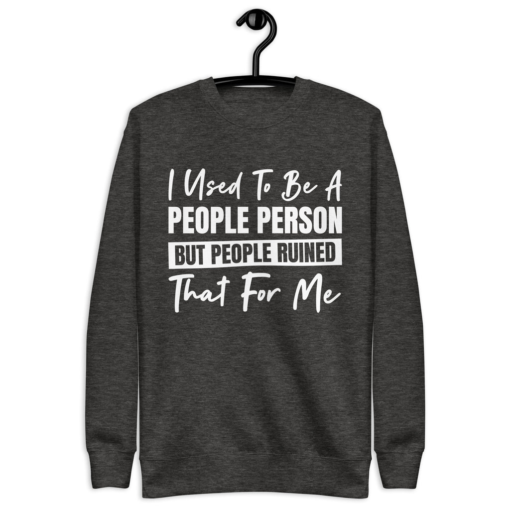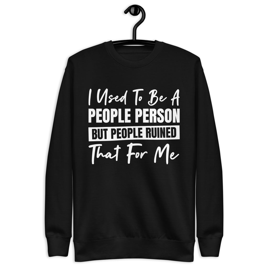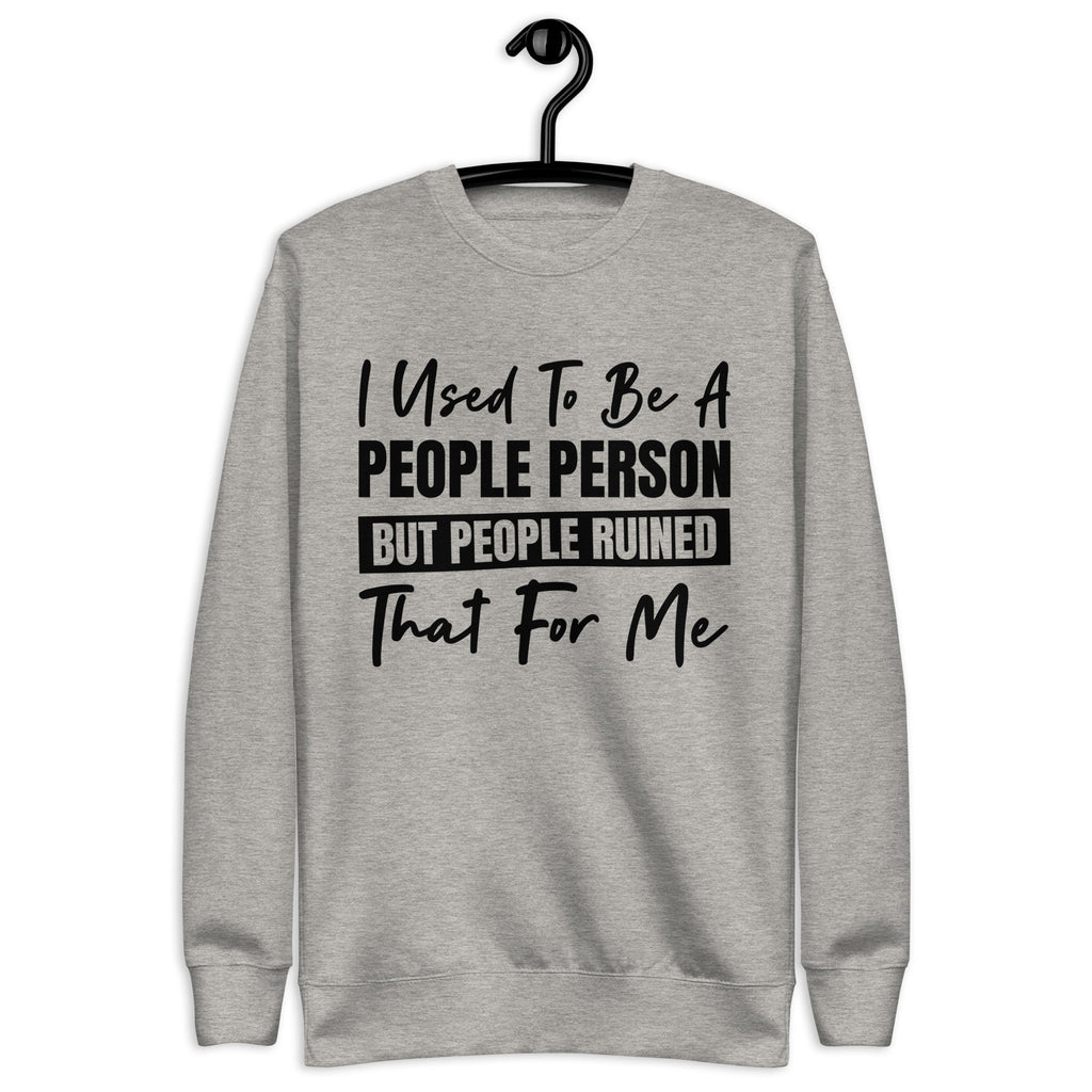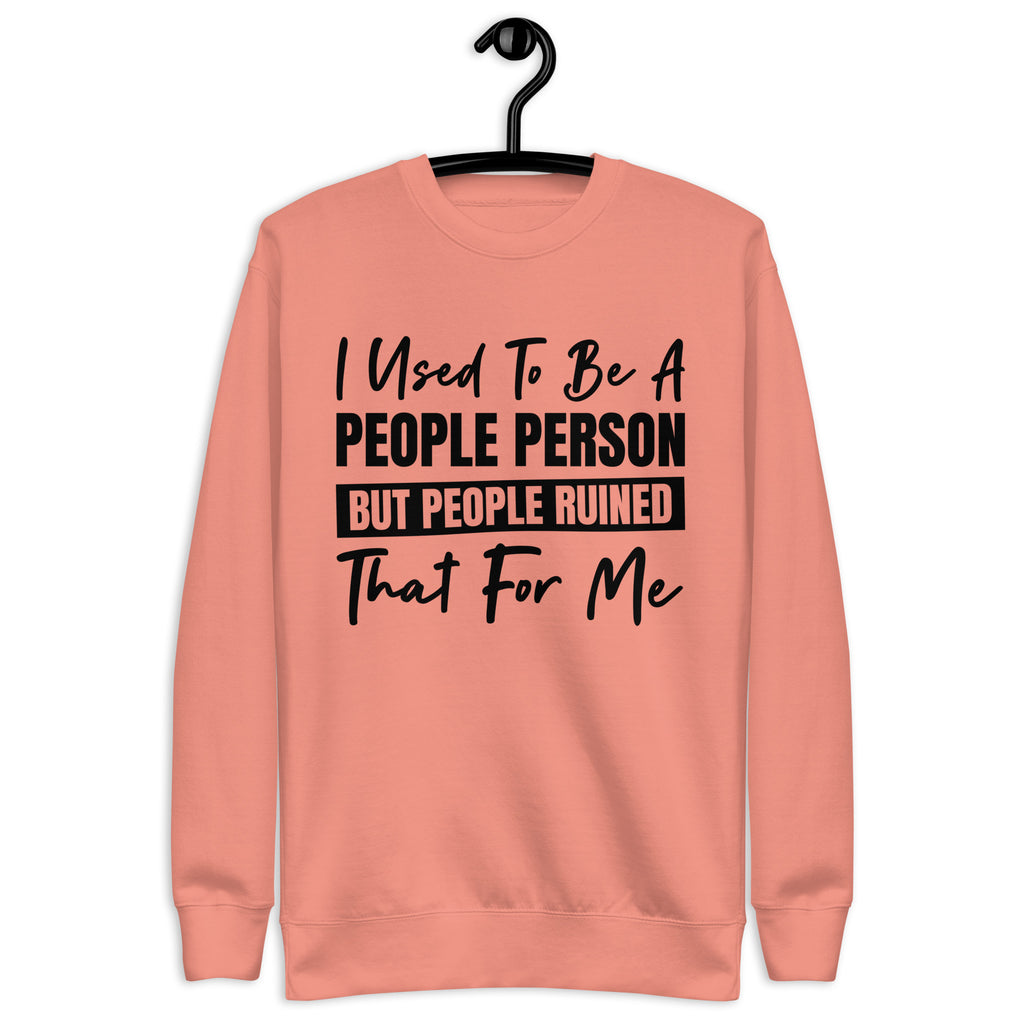 Let your sweatshirt do the talking with this “I Used to Be a People Person But People Ruined That for Me” design — perfect for anyone who’s had enough of small talk and fake smiles. It’s funny, blunt, and oh-so-relatable for introverts and realists alike.