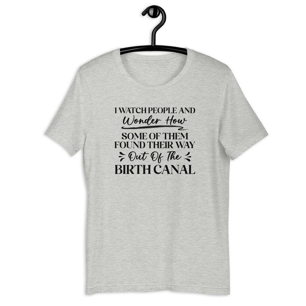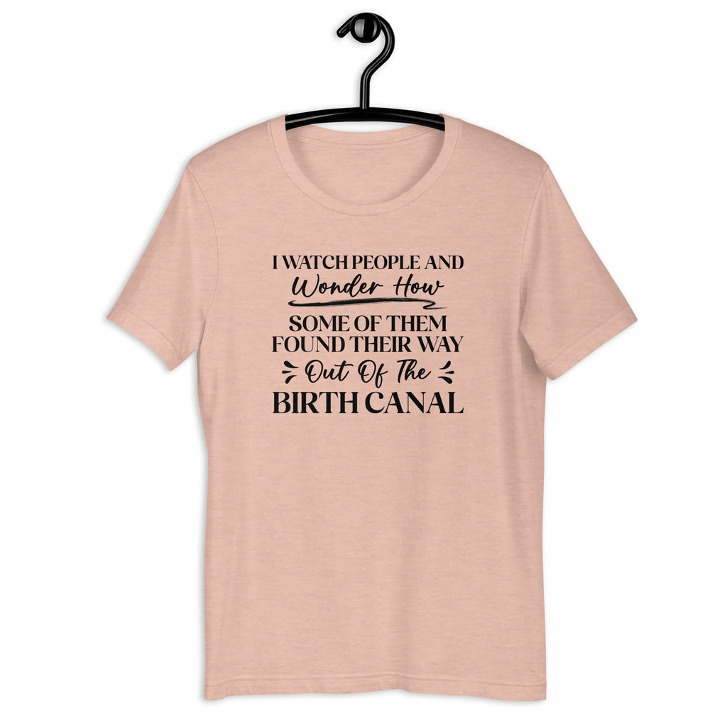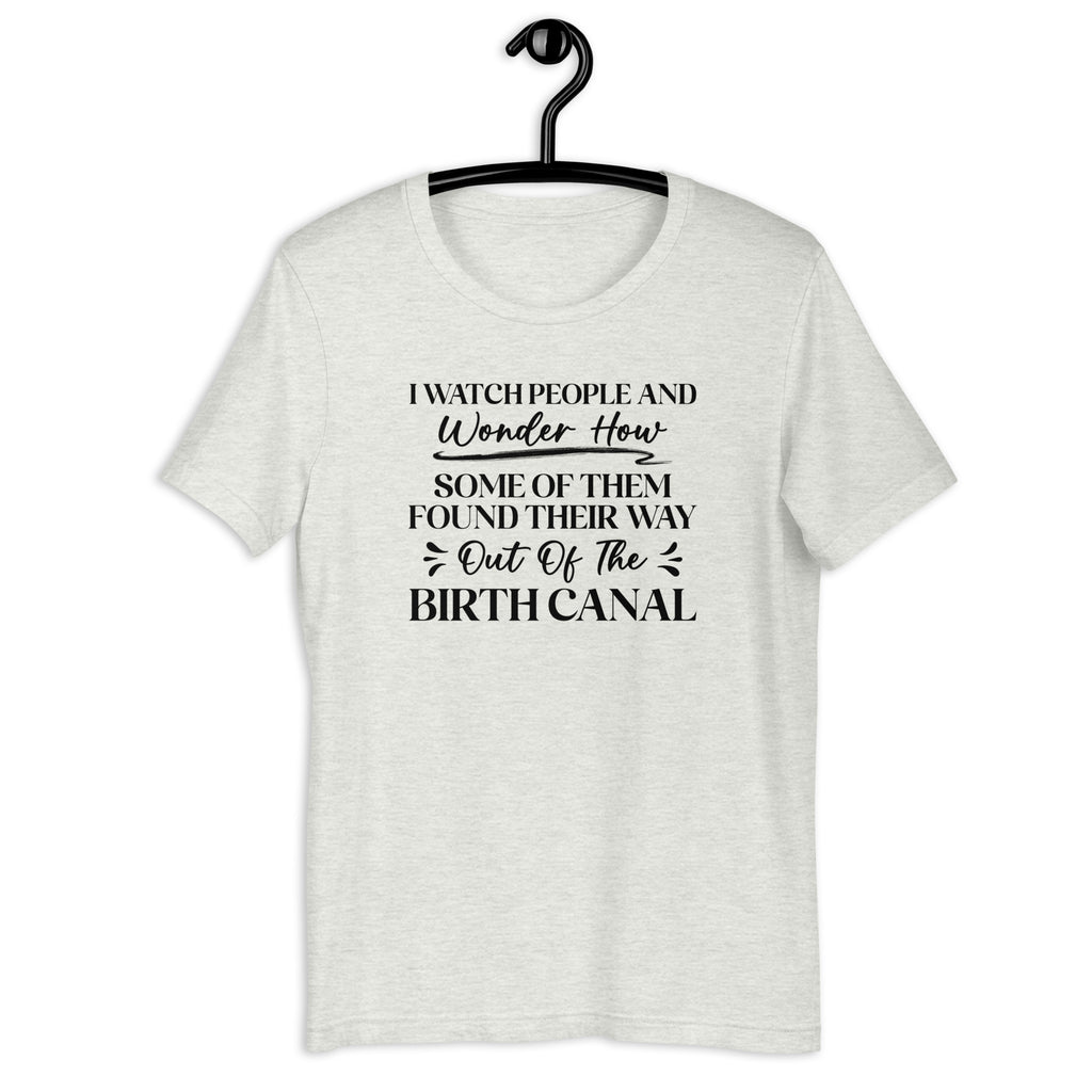 The “I Watch People and Wonder How Some of Them Found Their Way Out of the Birth Canal” t-shirt is the ultimate blend of humor and savage honesty. Perfect for those who silently (or not so silently) question humanity on a daily basis, this shirt says what you’re really thinking without you having to say a word.