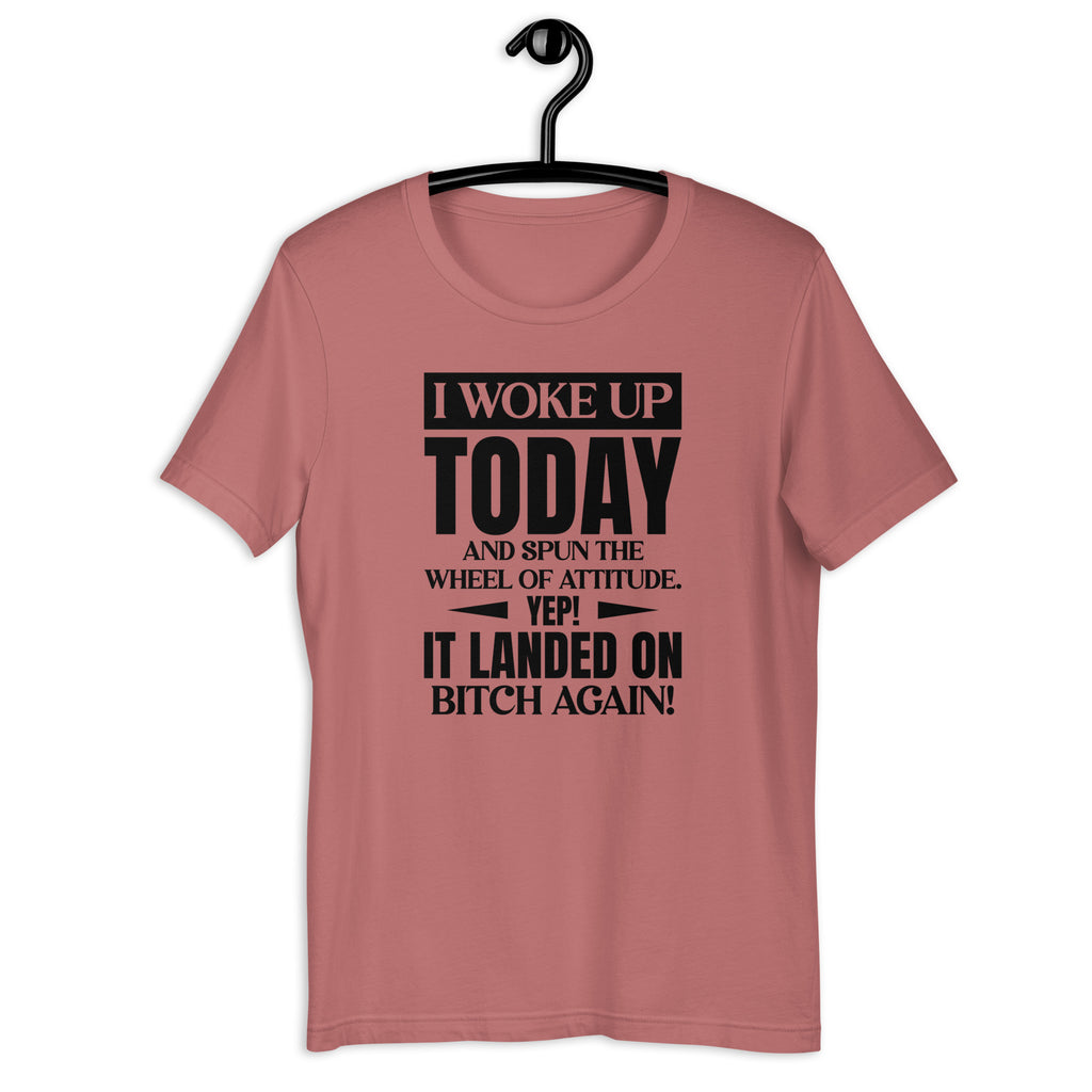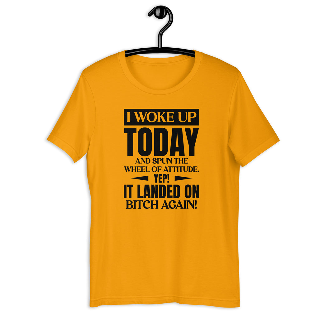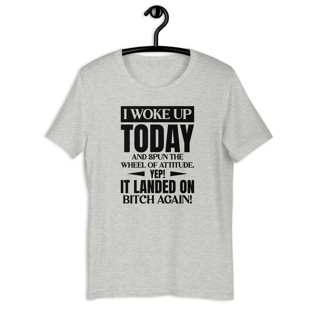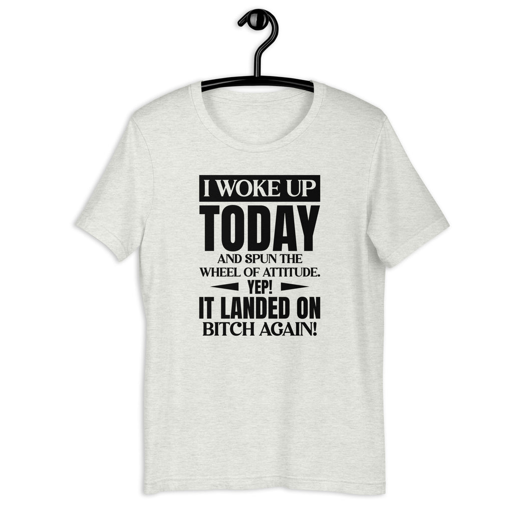 Start your day with unapologetic attitude in the “I Woke Up Today and Spun the Wheel of Attitude — Yep, It Landed on Bitch Again” T-shirt. Perfect for anyone who knows their mood isn’t up for negotiation, this hilarious tee combines sass, honesty, and humor in one bold statement.