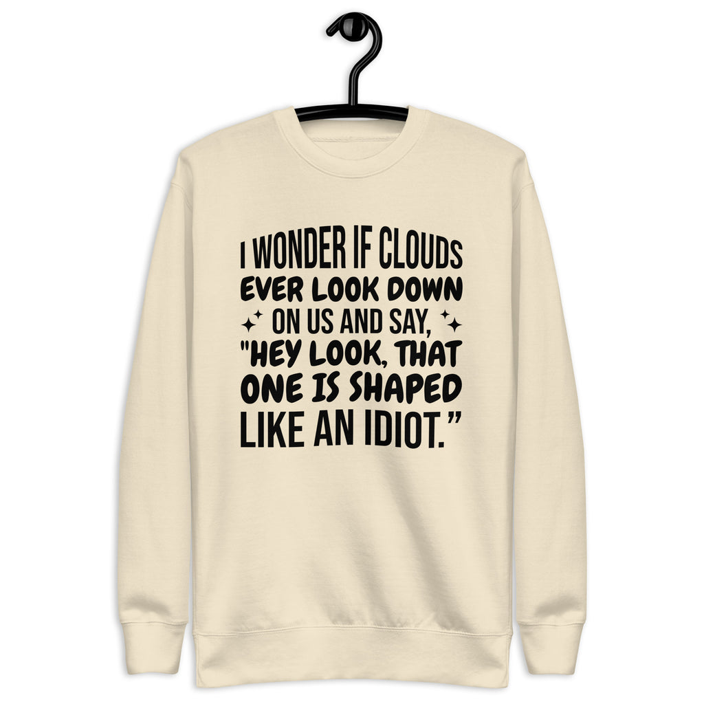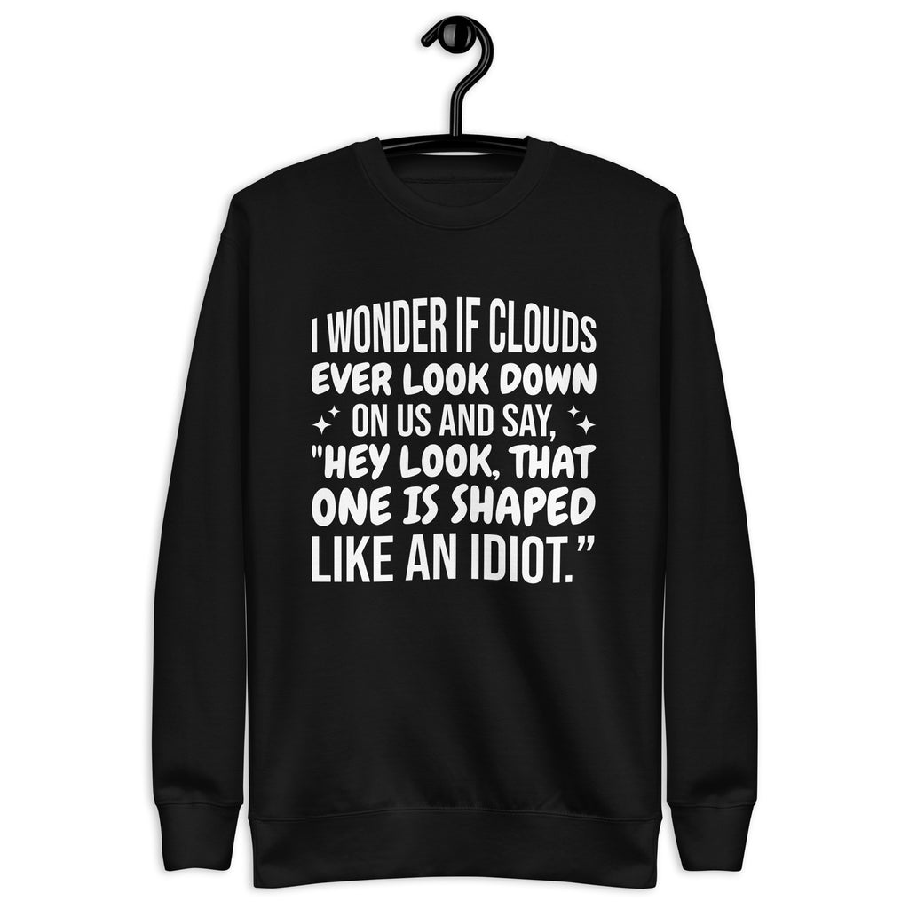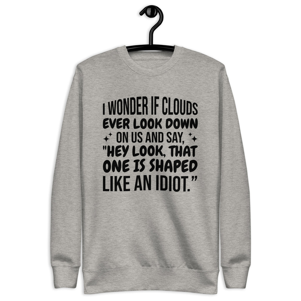 Flip the perspective with a laugh. The “I Wonder If Clouds Ever Look Down on Us and Say ‘Hey Look, That One’s Shaped Like an Idiot’” sweatshirt is perfect for anyone with a sarcastic sense of humor and a love for witty observations. It’s that perfect mix of cozy comfort and clever commentary — ideal for days when you’re people-watching, daydreaming, or just feeling a little extra judgy.