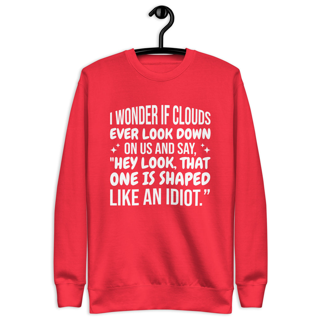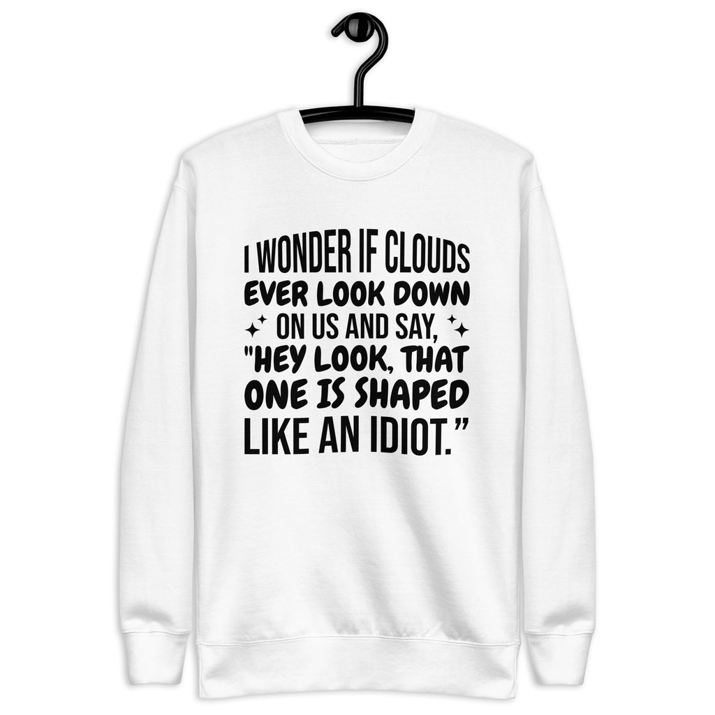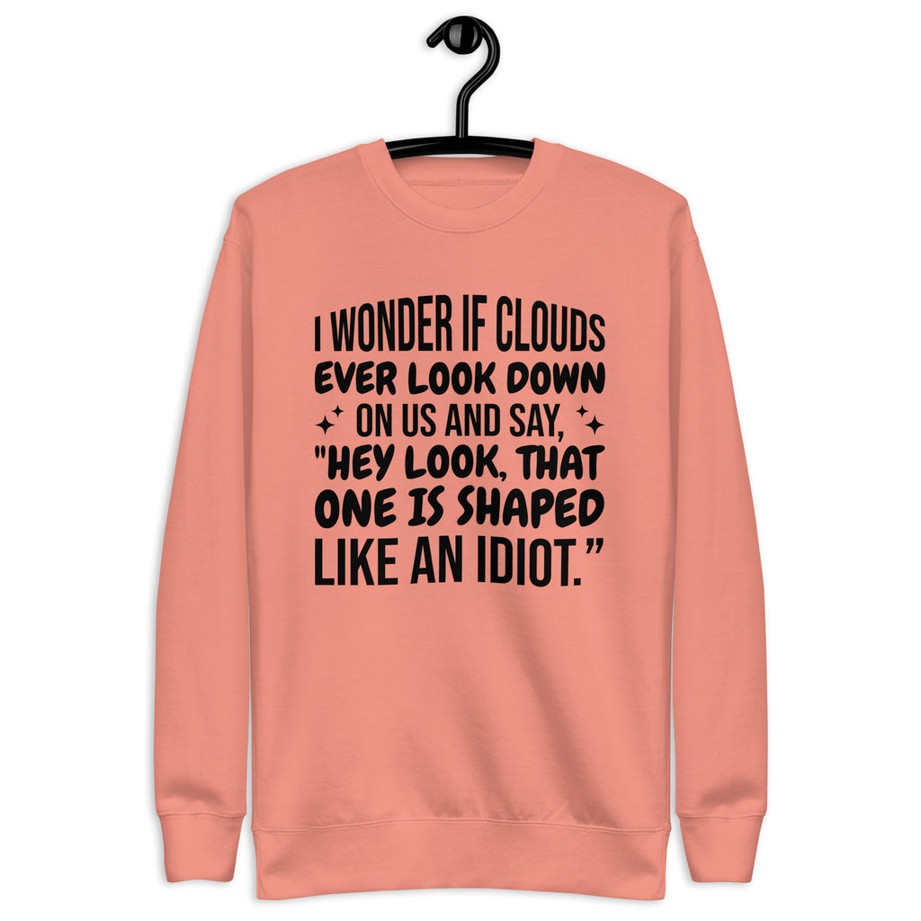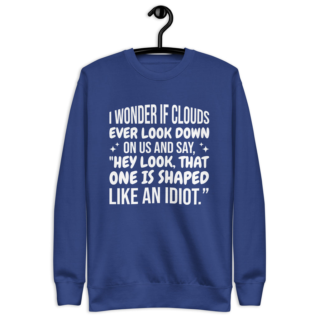 Flip the perspective with a laugh. The “I Wonder If Clouds Ever Look Down on Us and Say ‘Hey Look, That One’s Shaped Like an Idiot’” sweatshirt is perfect for anyone with a sarcastic sense of humor and a love for witty observations. It’s that perfect mix of cozy comfort and clever commentary — ideal for days when you’re people-watching, daydreaming, or just feeling a little extra judgy.