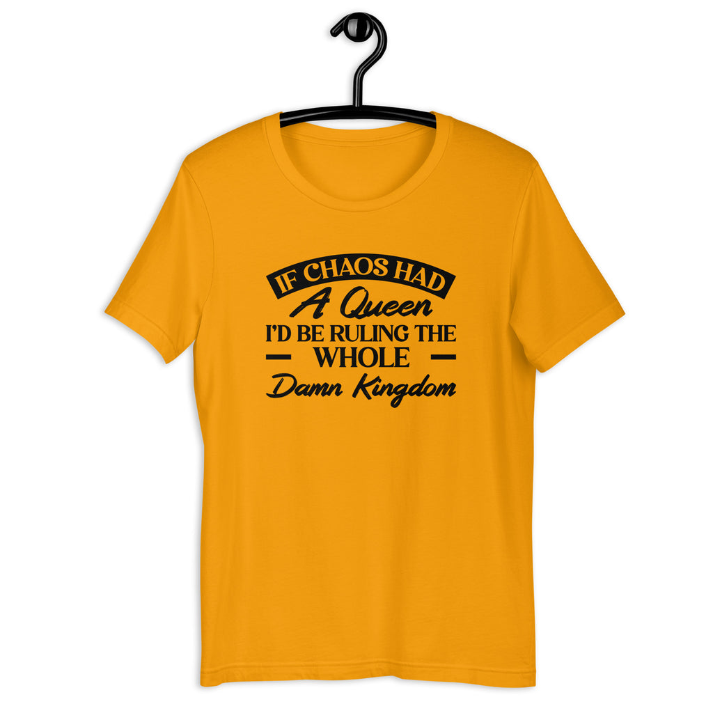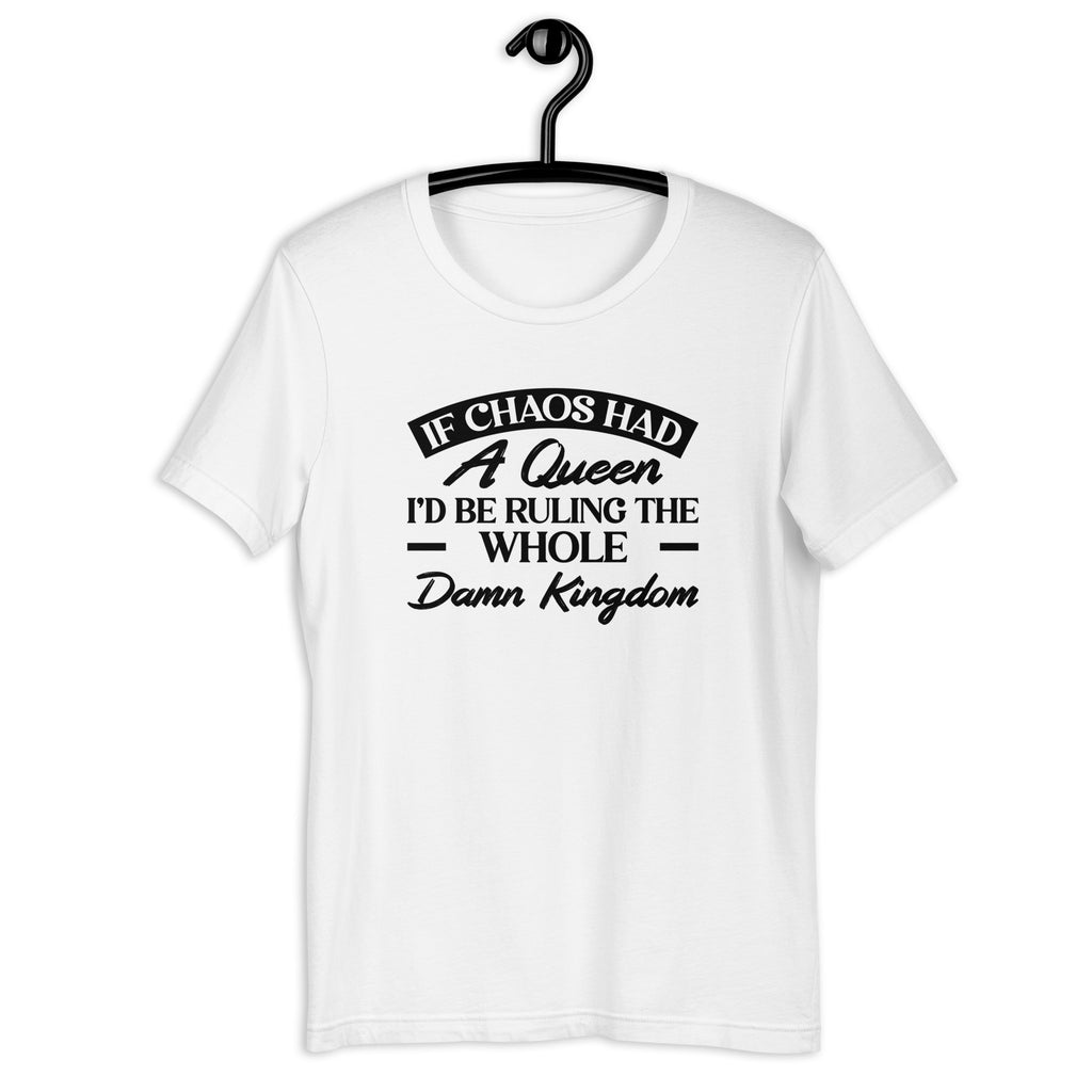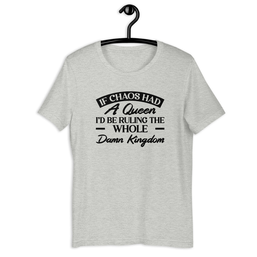 Rule the realm of beautiful disorder with the “If Chaos Had a Queen, I’d Be Ruling the Whole Damn Kingdom” T-shirt. Perfect for anyone who thrives in unpredictability, attracts drama without trying, or simply is the storm, this tee crowns you as the undisputed monarch of mayhem.