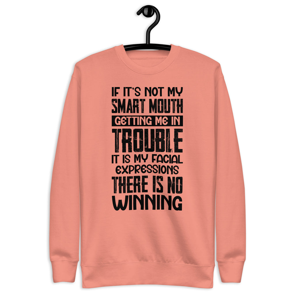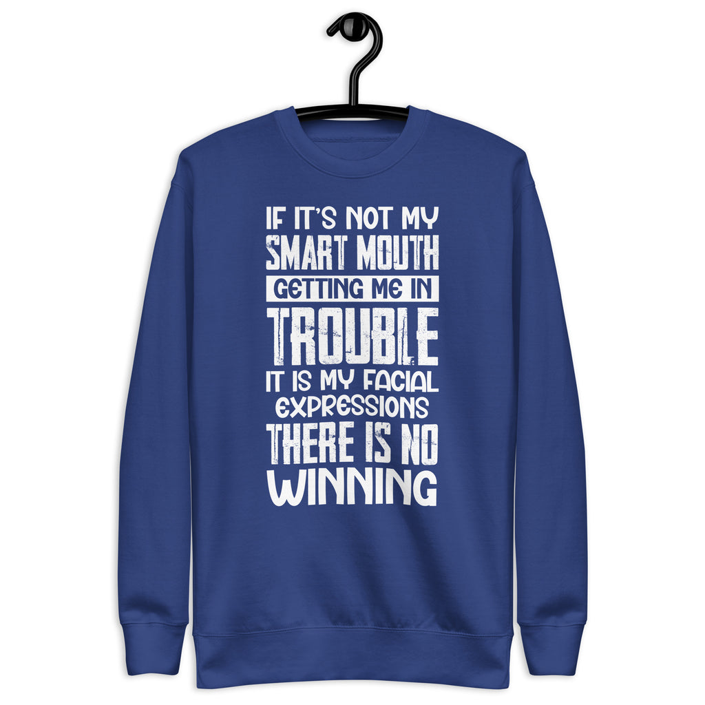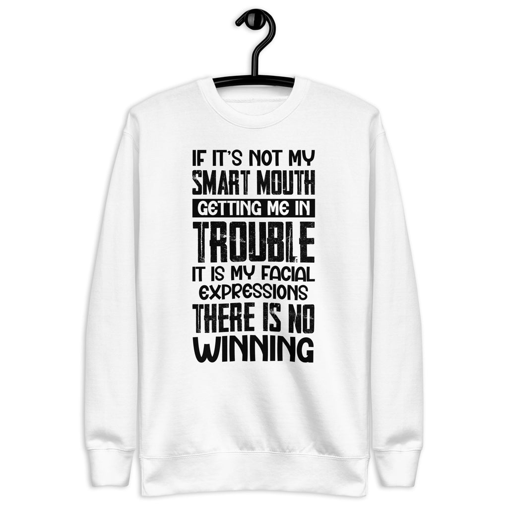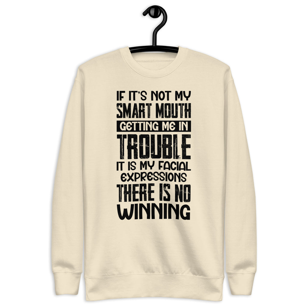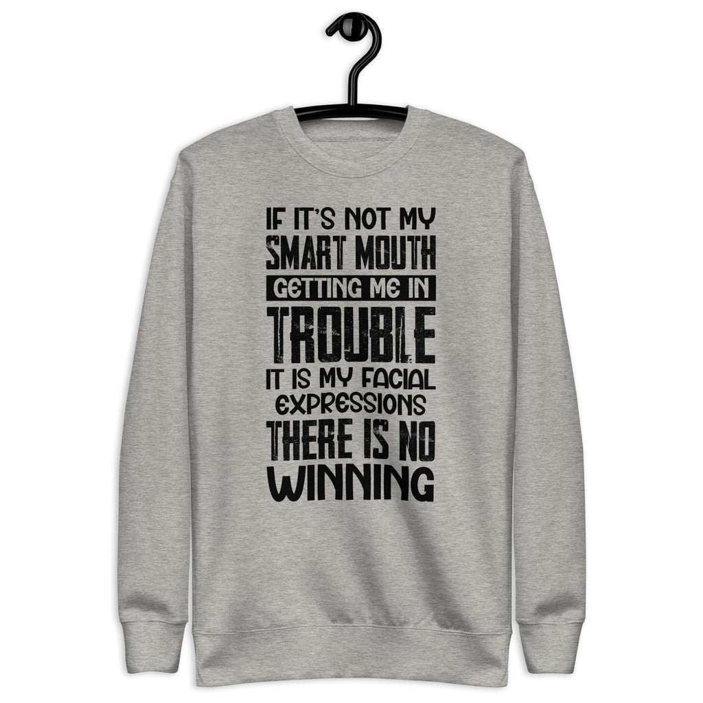 Stay warm while keeping it real with the “If It’s Not My Smart Mouth Getting Me in Trouble, It’s My Facial Expressions—There Is No Winning” sweatshirt. Perfect for anyone whose sarcasm and unfiltered honesty always seem to get them into situations, this cozy piece is as bold as your personality.