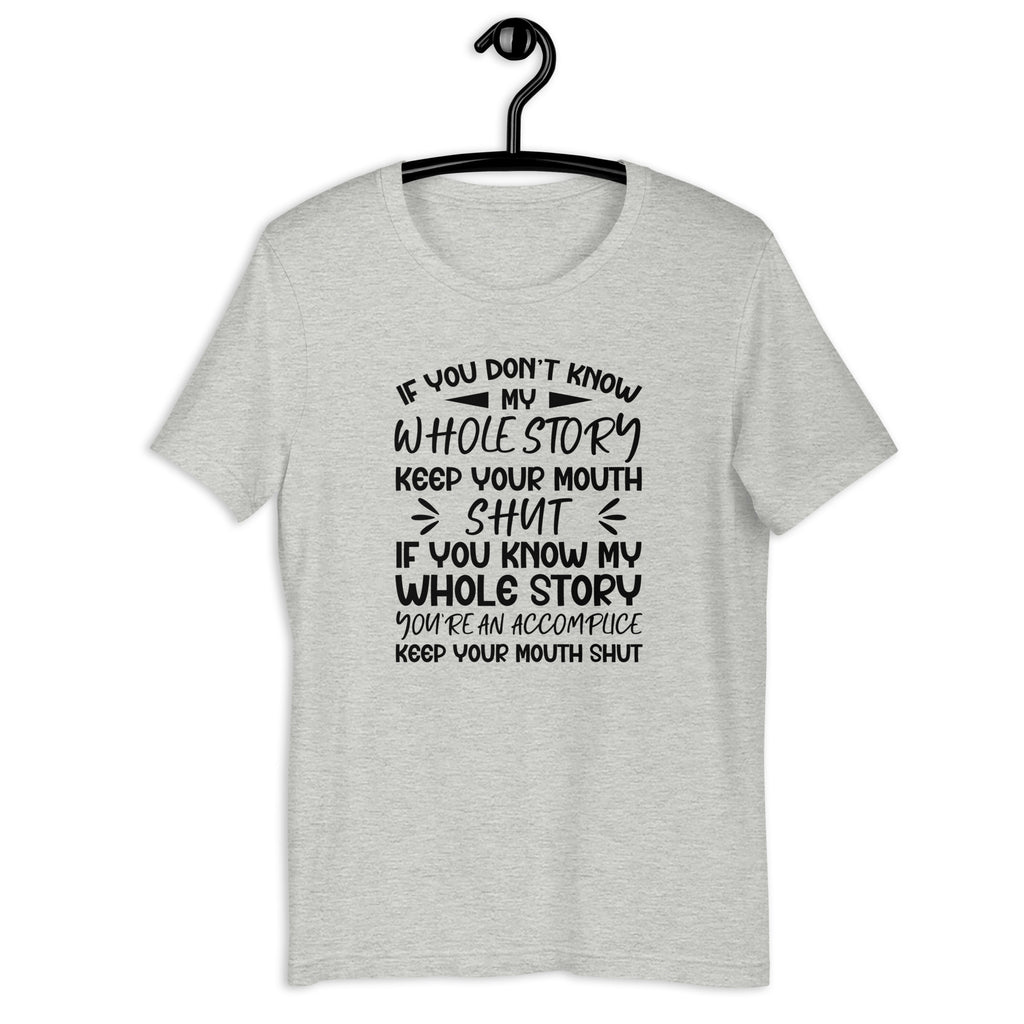 Lay down the law with the “If You Don’t Know the Whole Story Keep Your Mouth Shut, If You Know My Whole Story You’re an Accomplice Keep Your Mouth Shut” t-shirt. Perfect for anyone who values loyalty and hates gossip, this tee delivers a bold reminder that not every story is meant to be told.