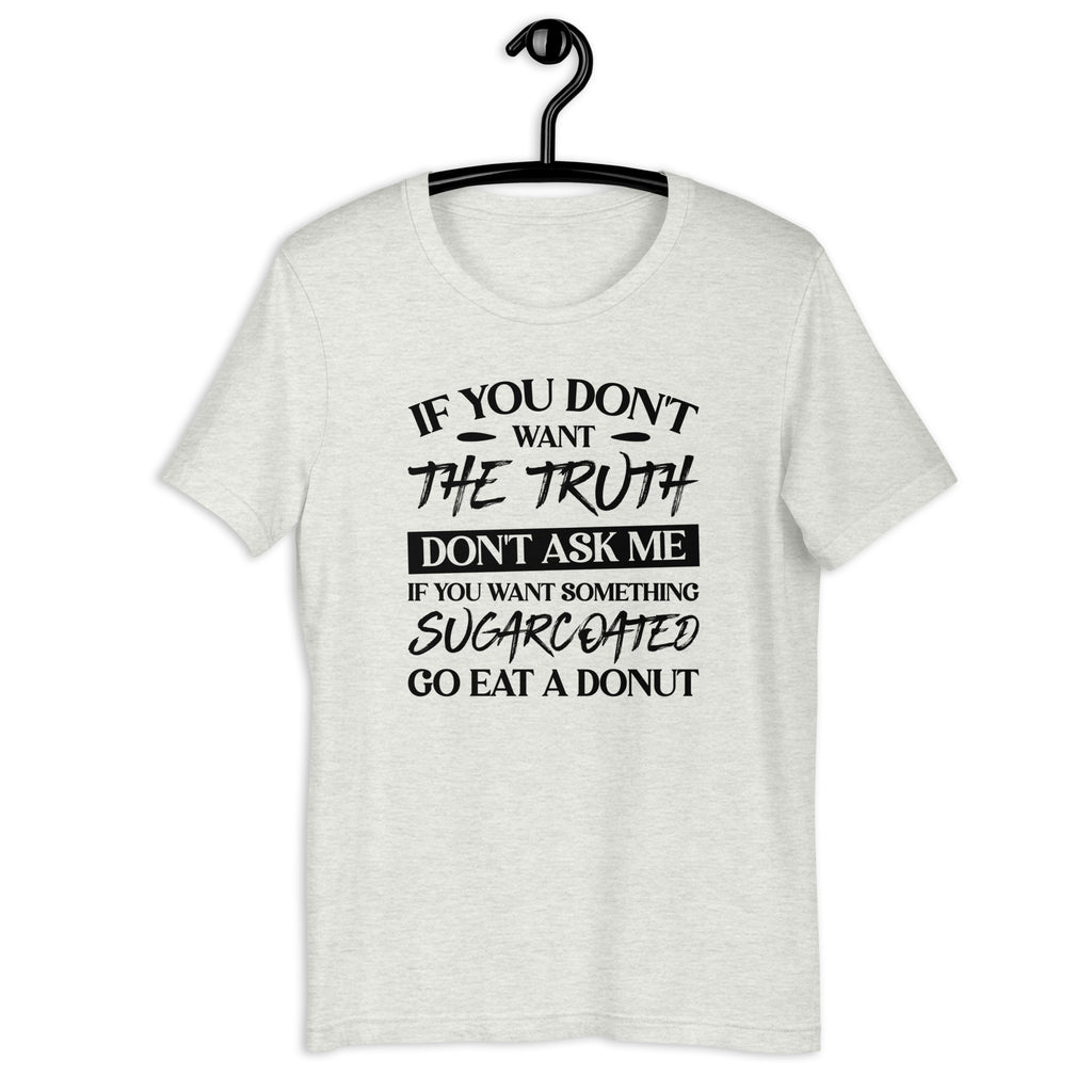 Keep it real with the “If You Don’t Want the Truth, Don’t Ask Me — If You Want Something Sugarcoated, Go Eat a Donut” T-shirt. Perfect for the brutally honest, no-nonsense types who say it like it is, this tee delivers attitude and humor in one bold statement.
