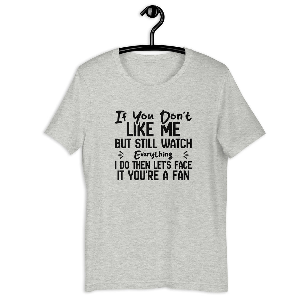 Let everyone know that not all attention is unwanted — some of it is just admiration — with the “If You Like But Still Don’t Me Watch Everything I Do Then Let’s Face It You’re a Fan” T-shirt. This tee delivers the perfect mix of humor, confidence, and cheeky truth, celebrating anyone who knows when curiosity crosses into full-blown fandom.