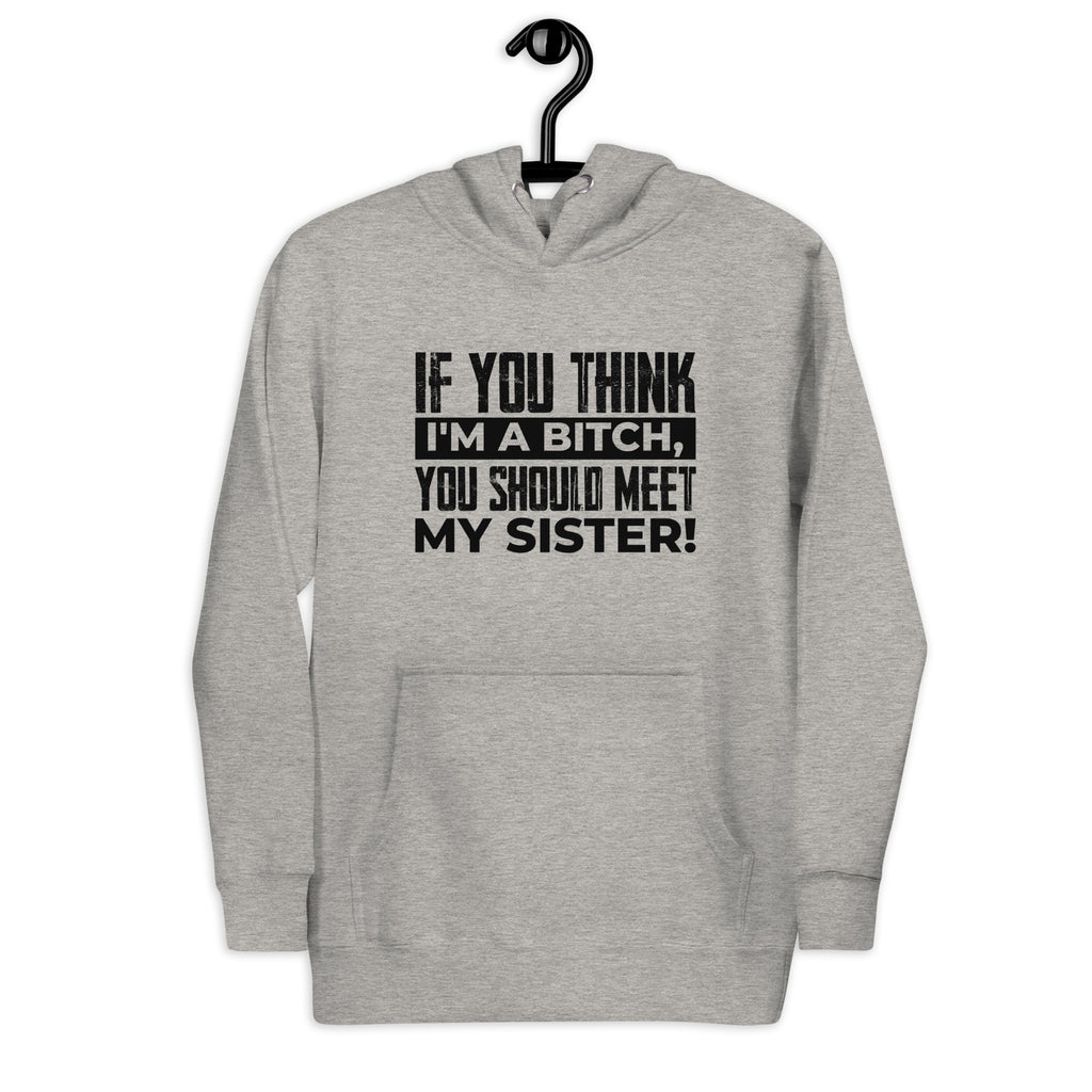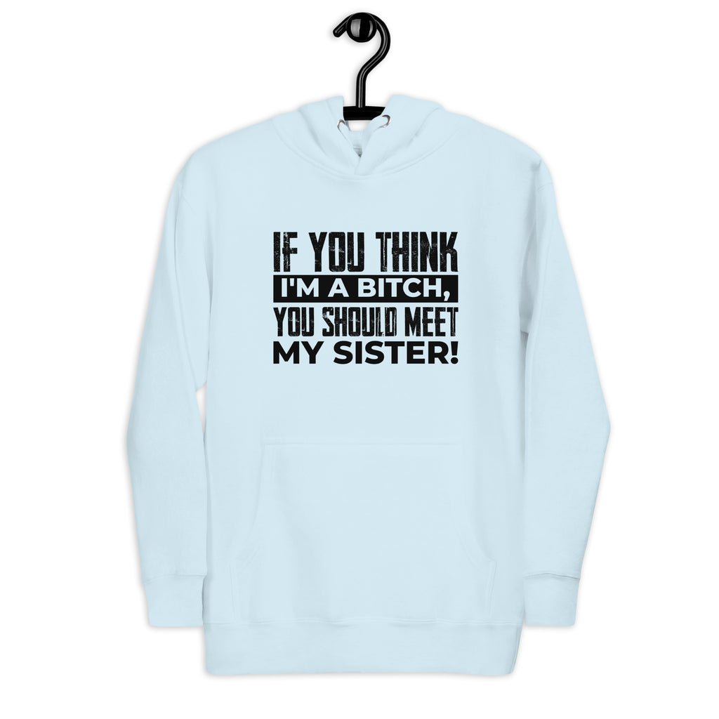 Turn sibling sass into a fashion statement with the “If You Think I’m a Bitch, You Should Meet My Sister” hoodie. Perfect for sisters who share sharp humor and unshakable bonds, this hoodie mixes comfort with a hilarious, unapologetic message. Whether you’re out together or just representing your sibling solo, it’s guaranteed to get laughs (and maybe some nods of agreement).