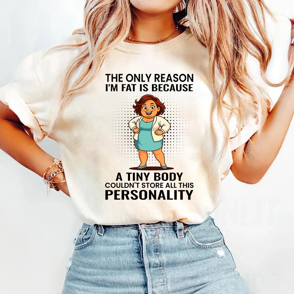 Our The Only Reason I’m Fat Is Because A Tiny Body Couldn’t Handle This Personality T-shirt delivers humor with confidence and charm. Perfect for anyone who loves to joke about themselves while celebrating their larger-than-life spirit. Made from soft, breathable fabric, this tee is as comfortable as it is hilarious—great for casual wear, get-togethers, or as a gift for friends who appreciate a good laugh.