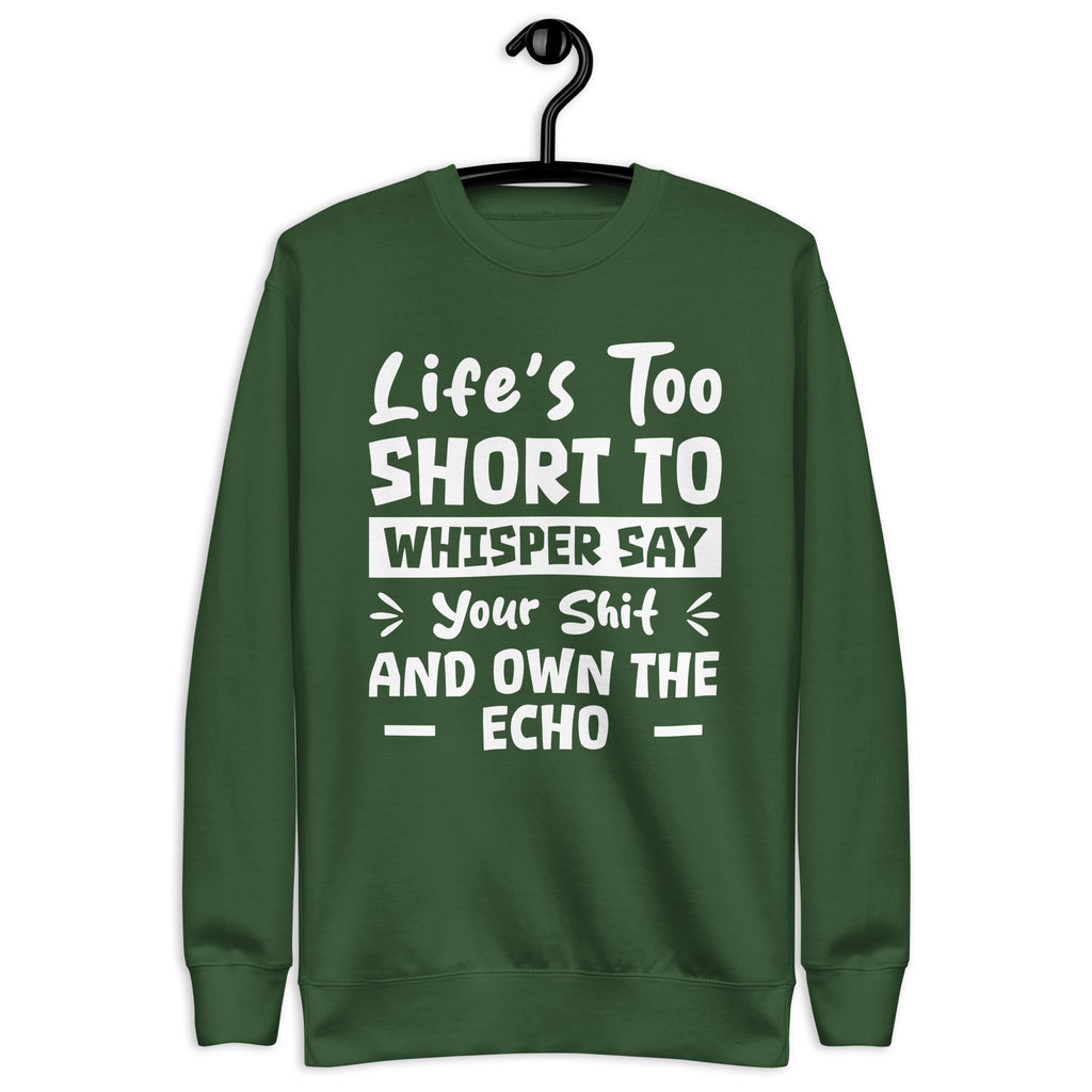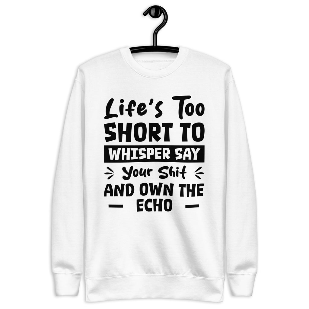 This “Life’s Too Short to Whisper — Say Your Sh*t and Own the Echo” sweatshirt is for the bold, unapologetic souls who speak their mind and never apologize for it. Perfect for anyone who believes in making their voice heard, standing their ground, and leaving a lasting impression — loud, proud, and unfiltered.