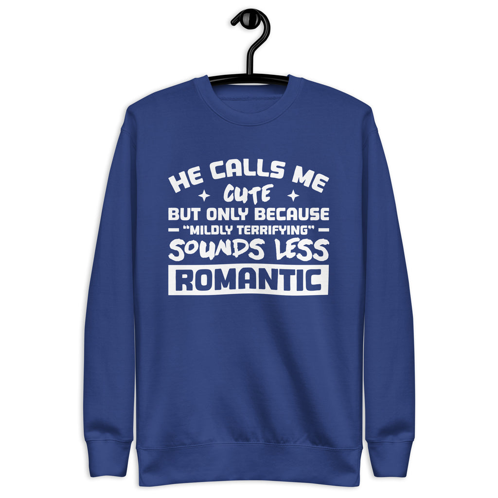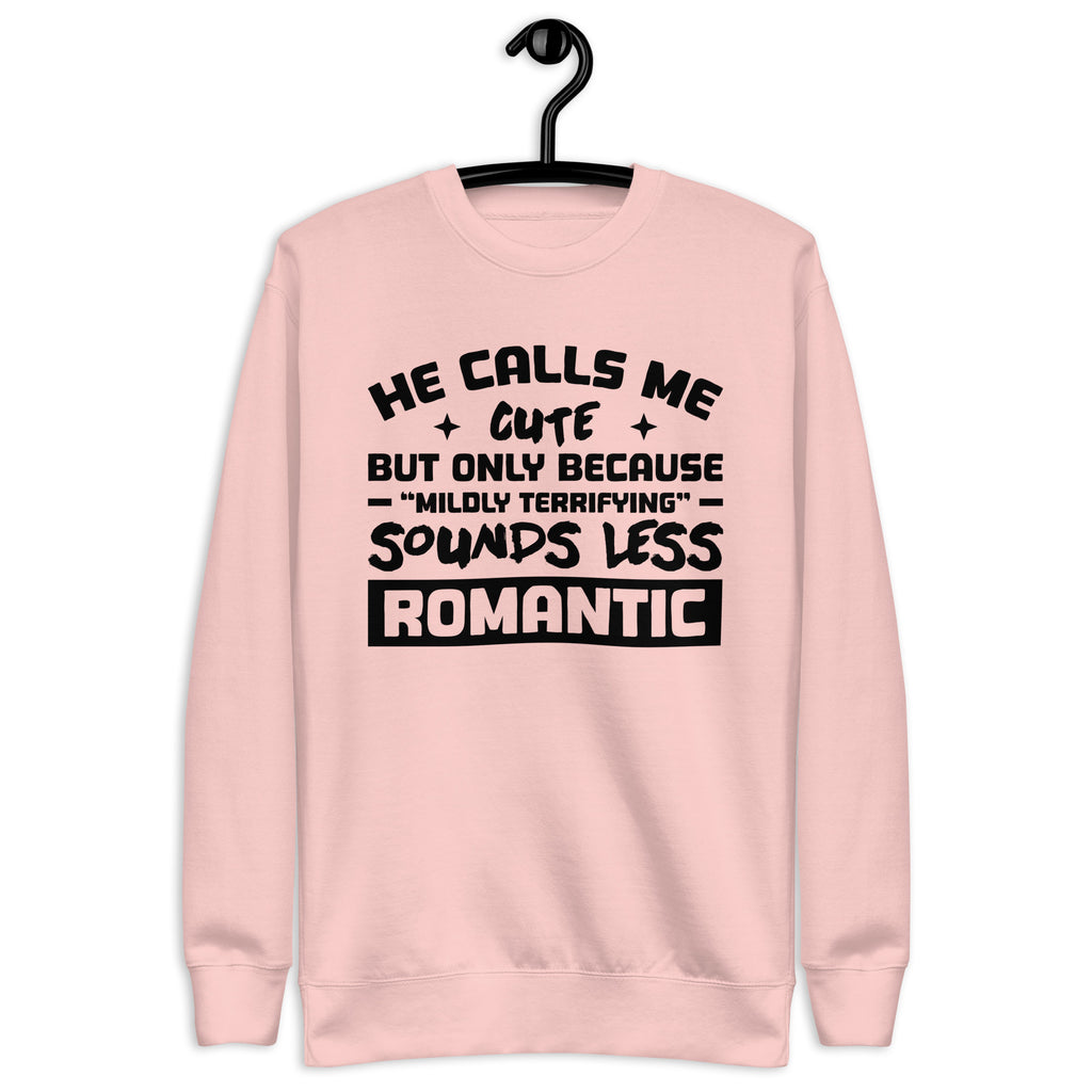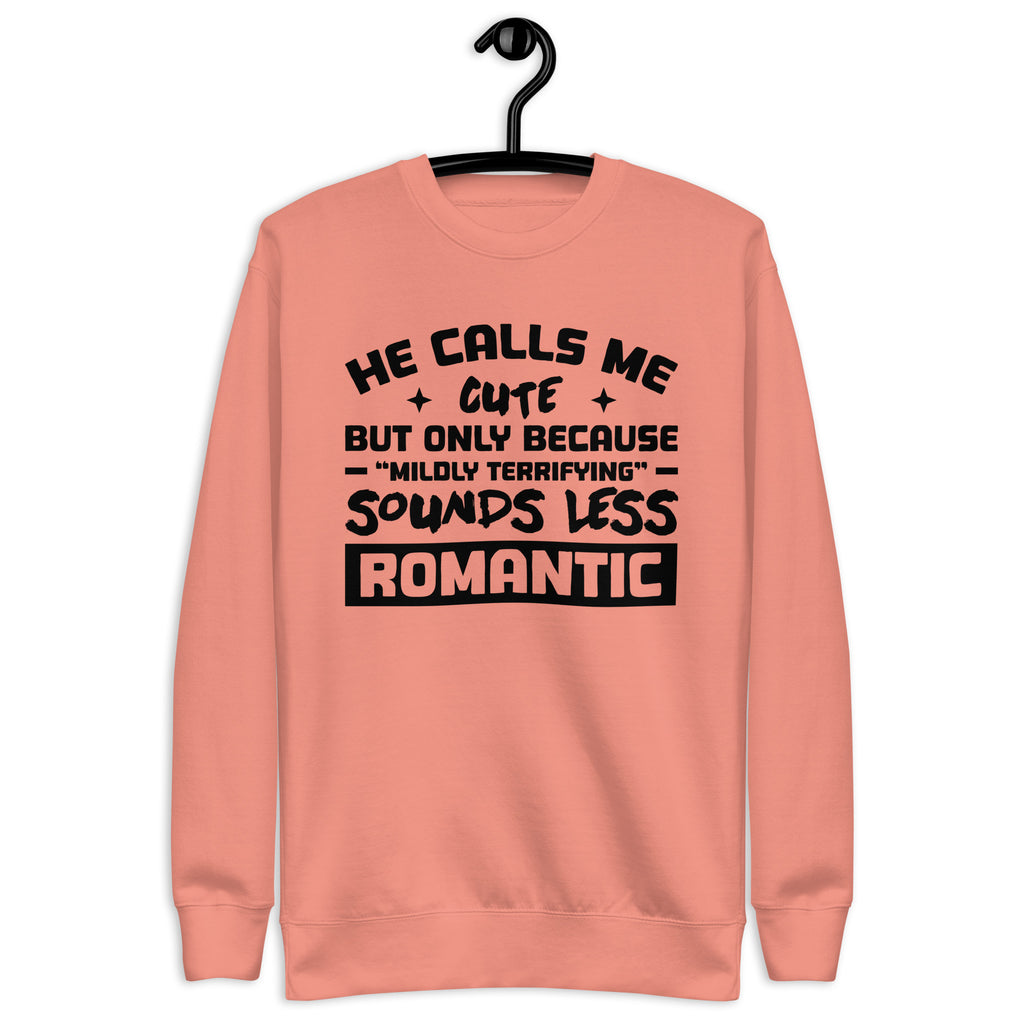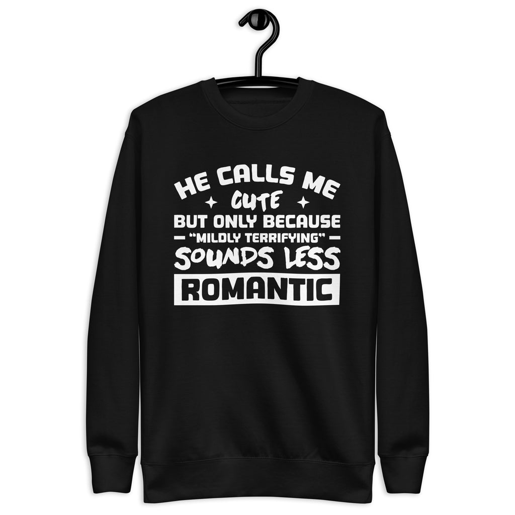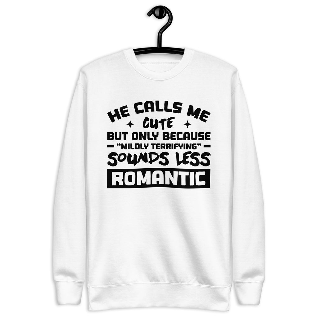 This “He Calls Me Cute, But Only Because ‘Mildly Terrifying’ Sounds Less Romantic” sweatshirt is made for the adorably intimidating — the ones who mix sweetness with just the right dose of chaos. Equal parts charming and menacing (in the best way), it’s perfect for anyone whose love story comes with a warning label.