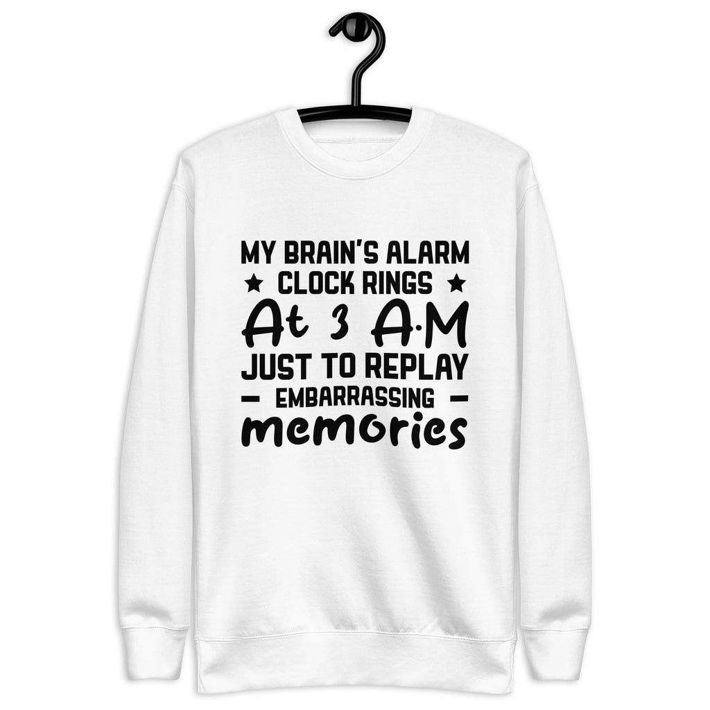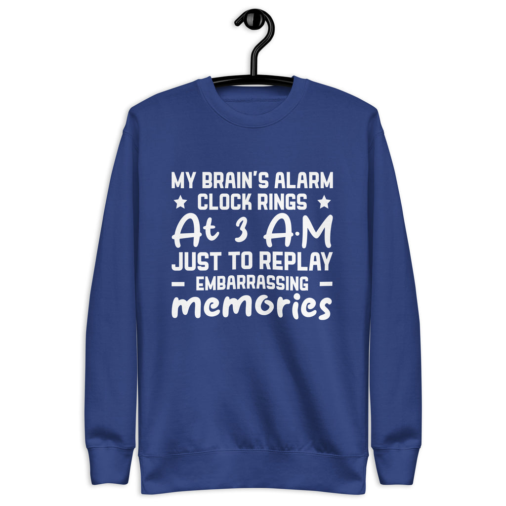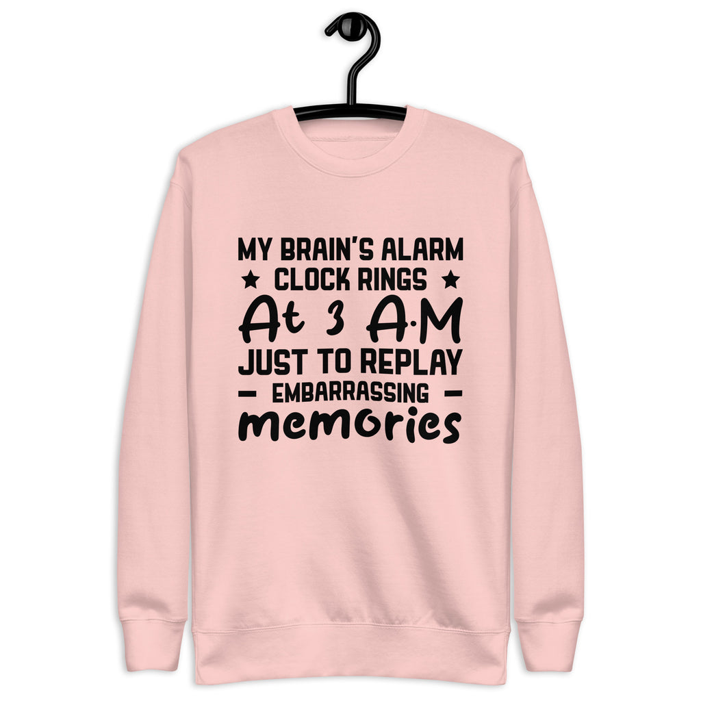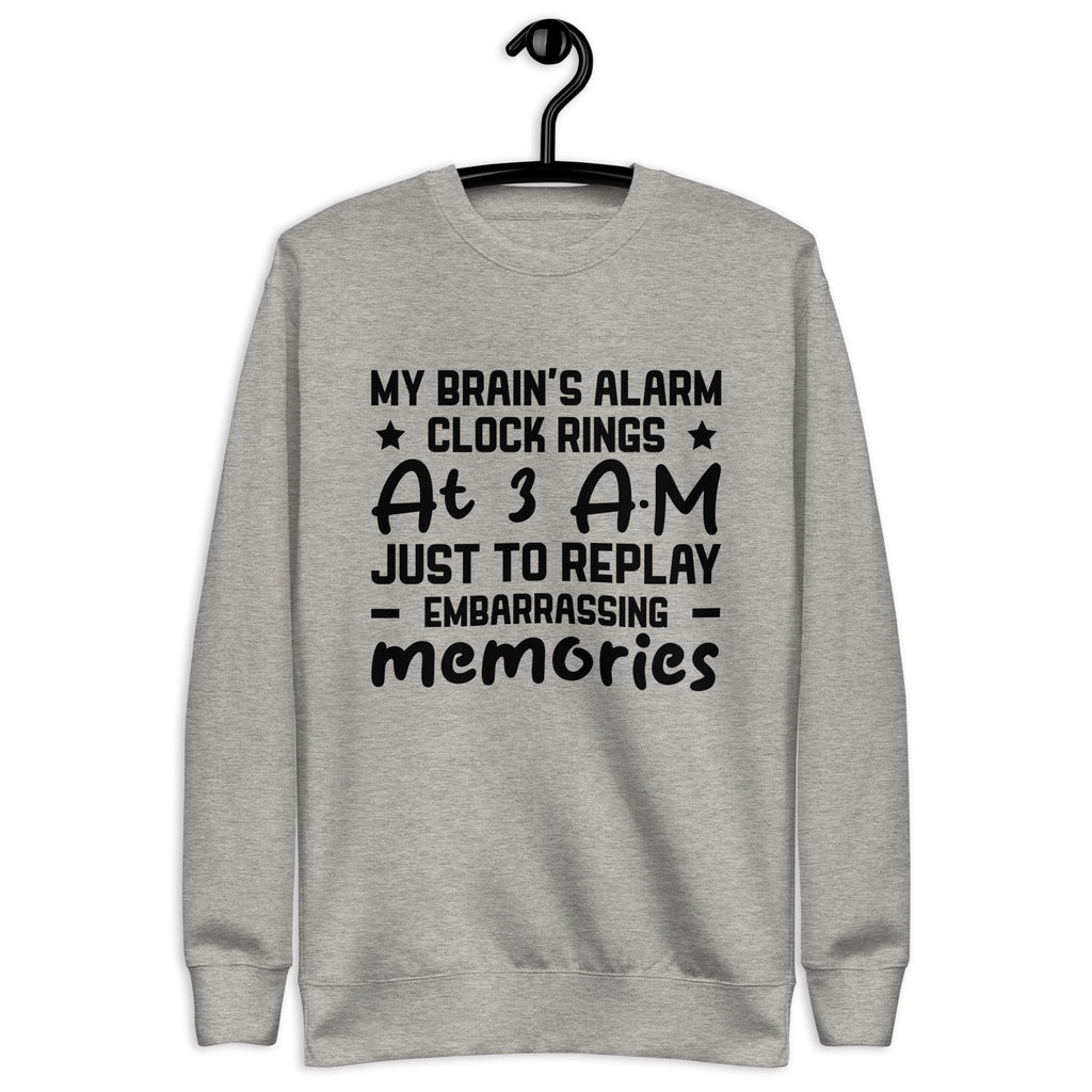 Some people wake up at 3 A.M. because they’re enlightened… you wake up because your brain insists on replaying every embarrassing moment you’ve ever had. This “My Brain’s Alarm Clock Rings at 3 A.M. Just to Replay Embarrassing Memories” sweatshirt captures the chaotic nighttime routine we all know too well.