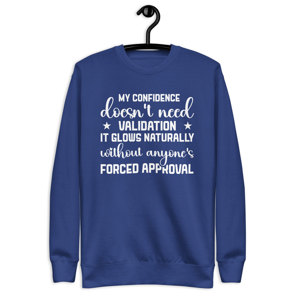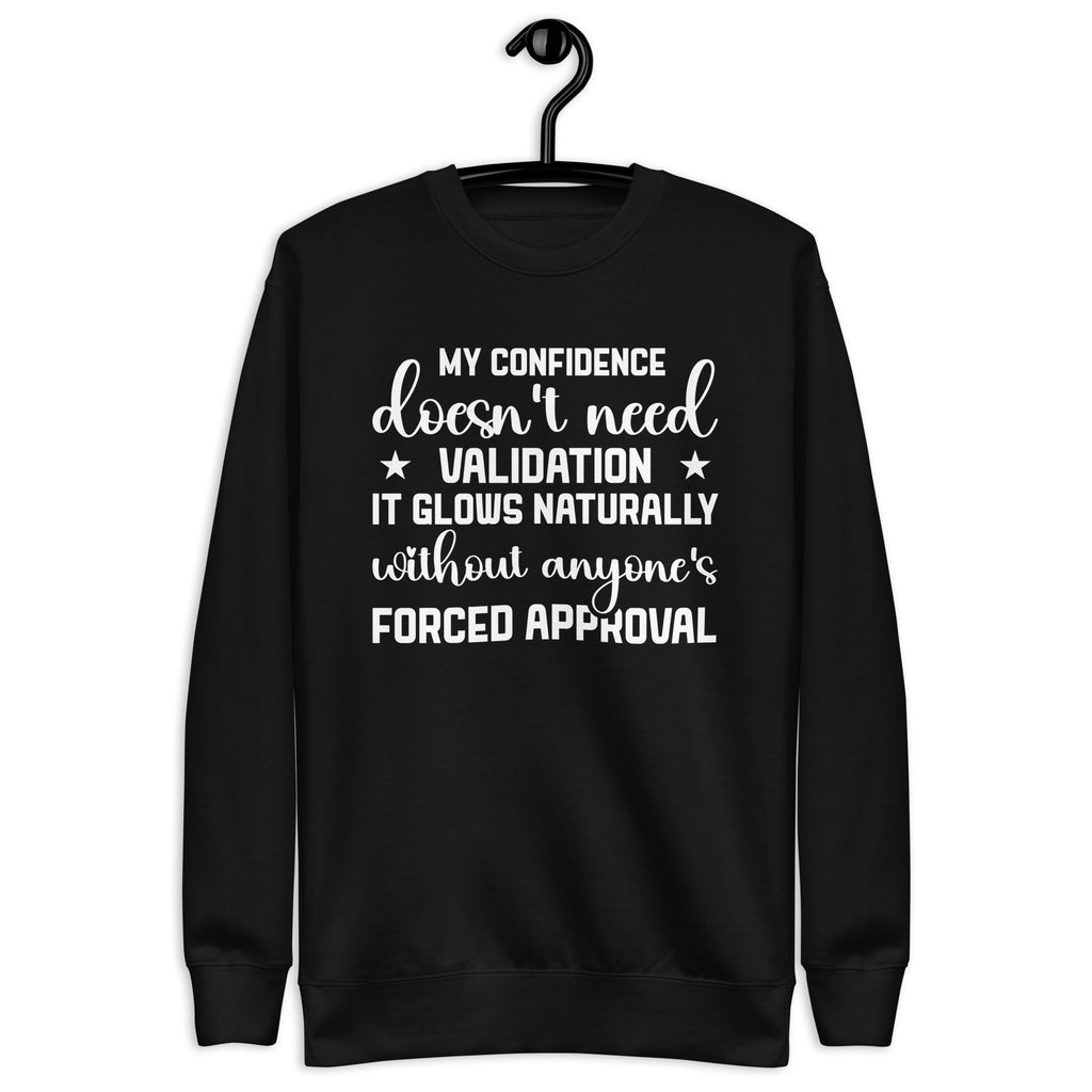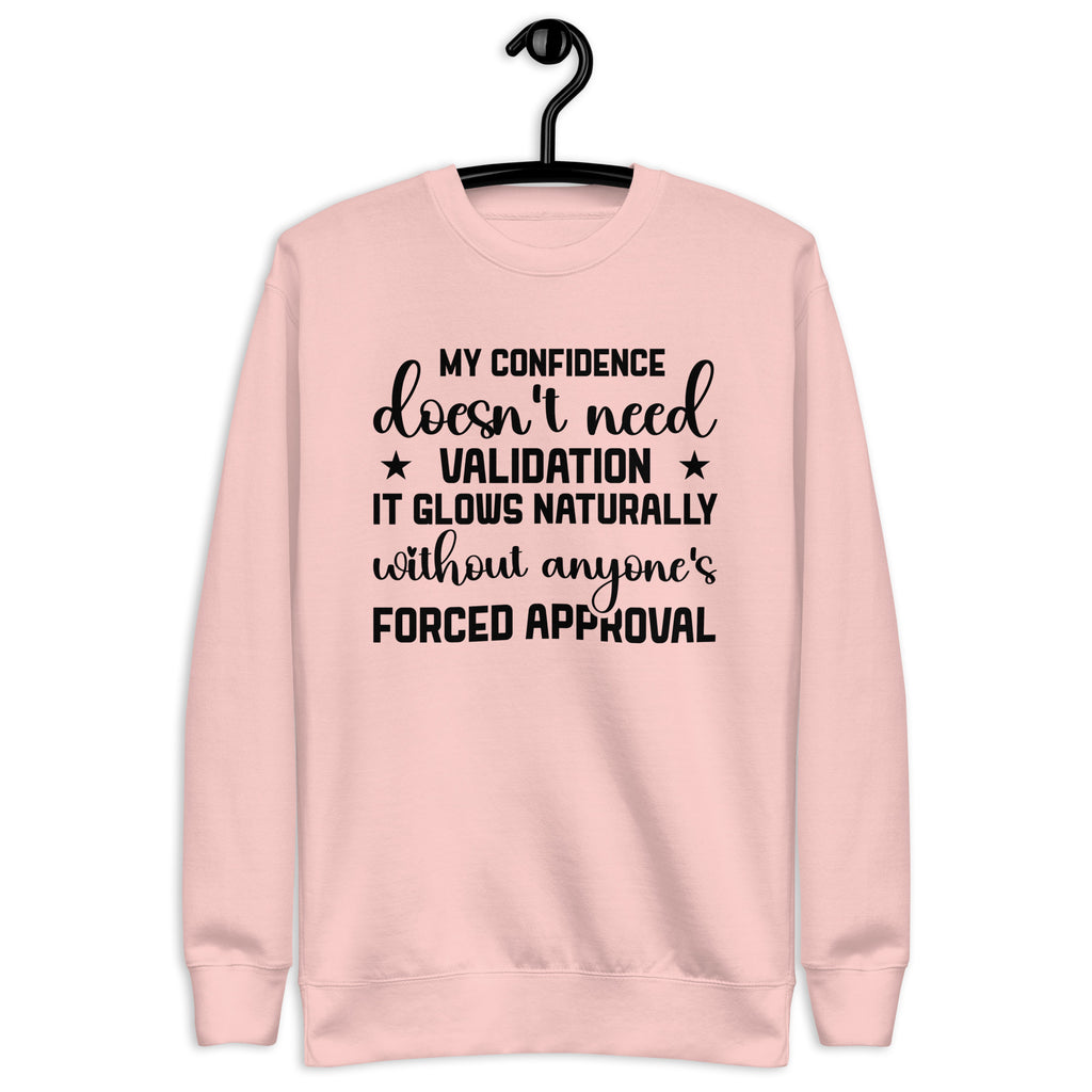 Confident, grounded, and quietly powerful — this “My Confidence Doesn’t Need Validation, It Glows Naturally Without Anyone’s Forced Approval” sweatshirt speaks to the kind of self-assurance that comes from within, not from applause. It’s for the ones who don’t chase praise, don’t crave permission, and don’t shrink just because someone else is uncomfortable with their shine.