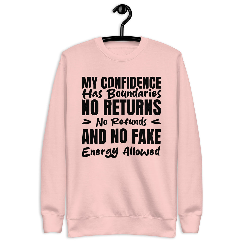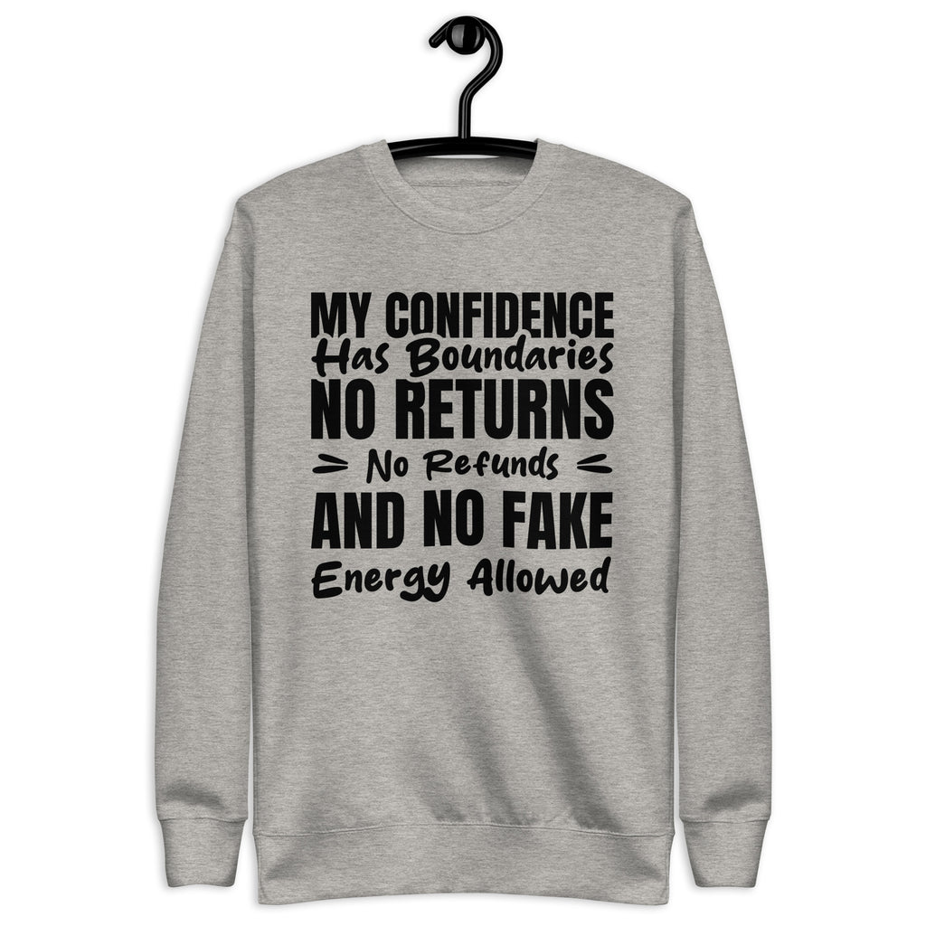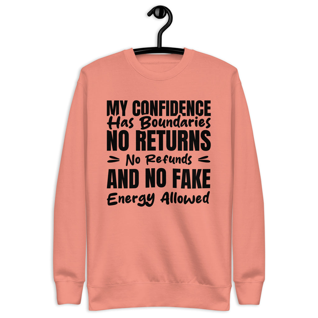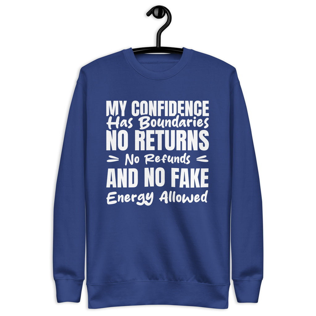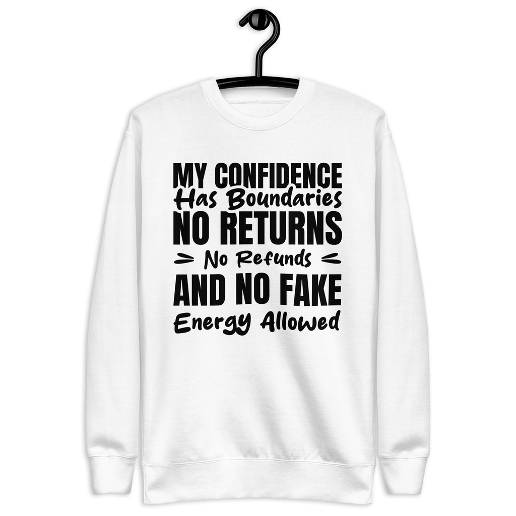 Unbothered, self-assured, and fully in control — this “My Confidence Has Boundaries: No Returns, No Refunds, and No Fake Energy Allowed” sweatshirt is for the ones who protect their peace like premium merchandise. No exchanges, no discounts, and definitely no low-vibration nonsense.