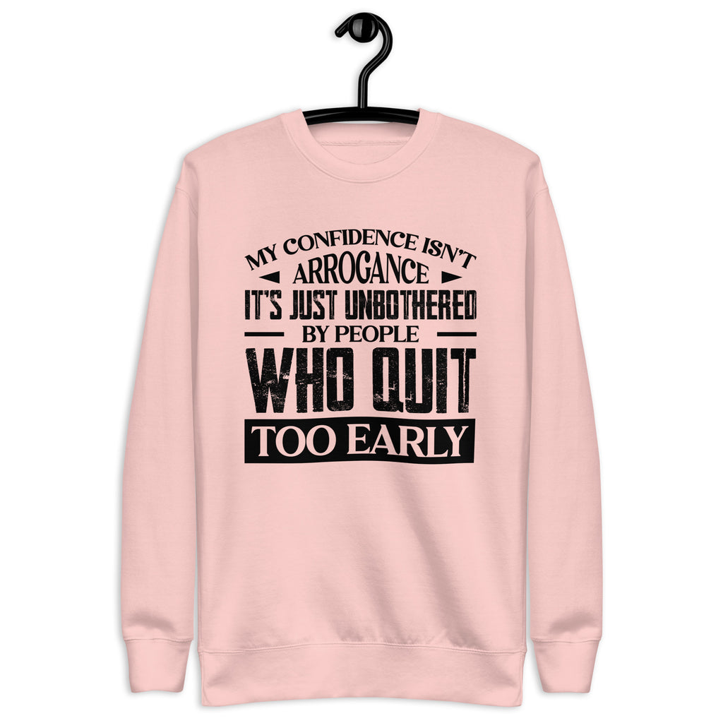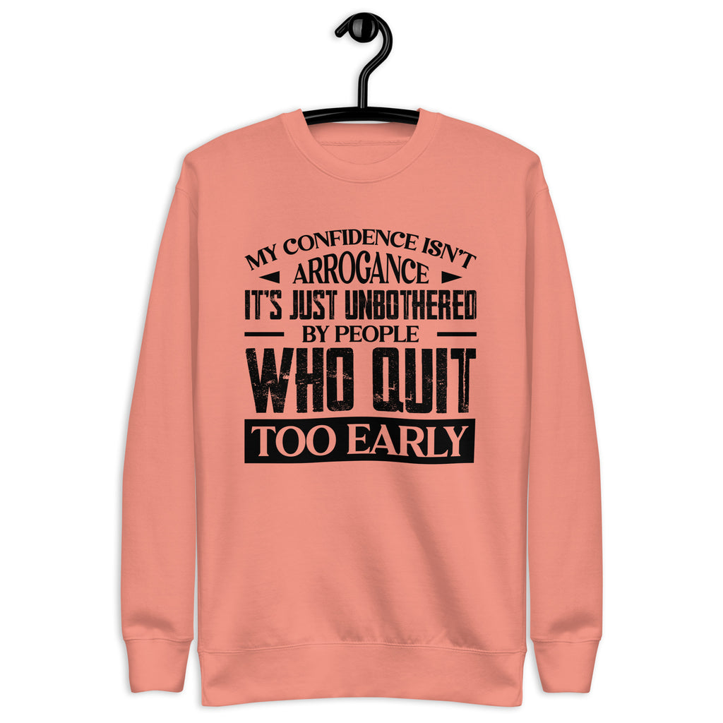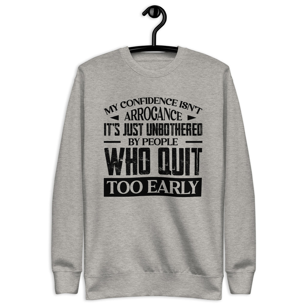 This “My Confidence Isn’t Arrogance — It’s Just Unbothered by People Who Quit Too Early” sweatshirt is made for the ones who keep going when others give up. Calm, driven, and quietly unstoppable, it’s a statement of self-assurance — not ego. Perfect for those who know the difference between being confident and being complacent.