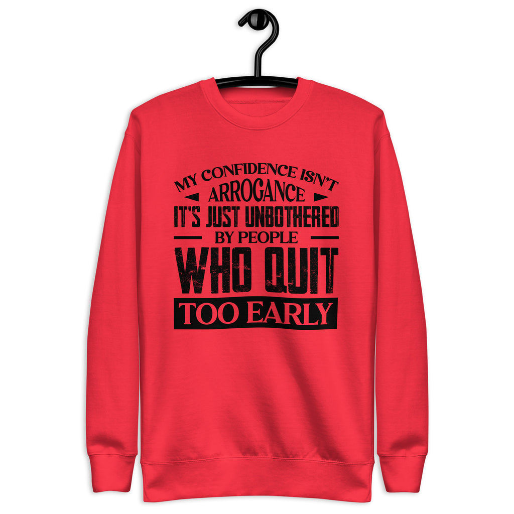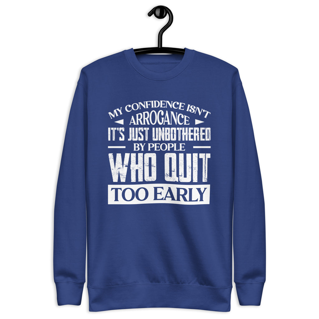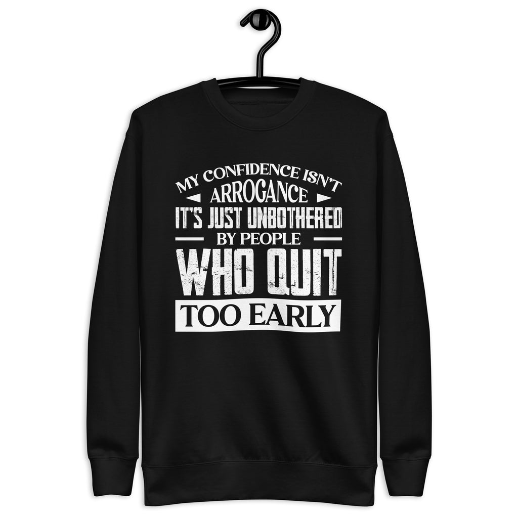 This “My Confidence Isn’t Arrogance — It’s Just Unbothered by People Who Quit Too Early” sweatshirt is made for the ones who keep going when others give up. Calm, driven, and quietly unstoppable, it’s a statement of self-assurance — not ego. Perfect for those who know the difference between being confident and being complacent.