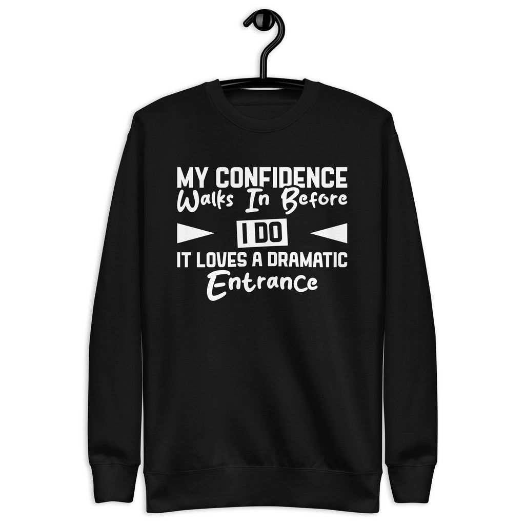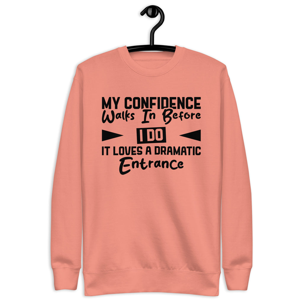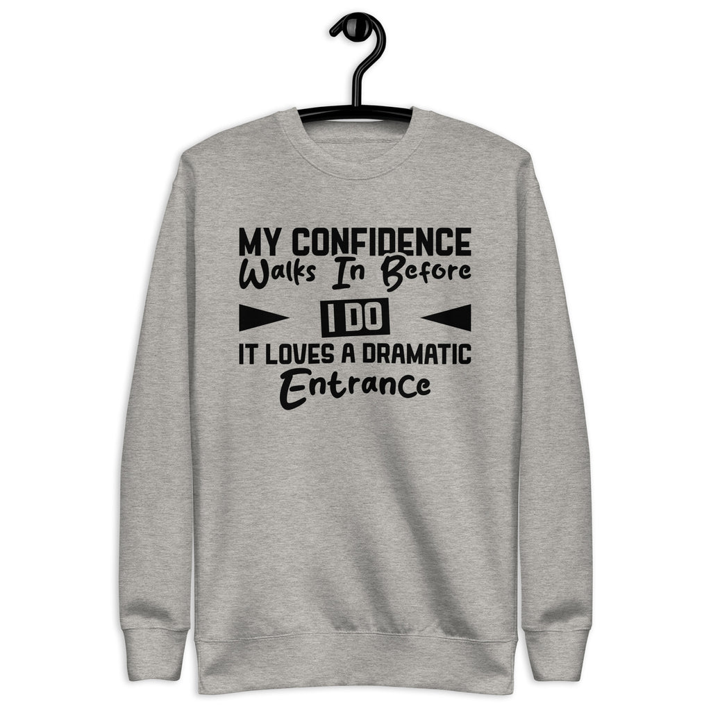 This “My Confidence Walks In Before I Do — It Loves a Dramatic Entrance” sweatshirt is for the ones who don’t just arrive — they enter. Bold, magnetic, and effortlessly stylish, it’s made for those whose presence turns heads and whose energy fills the room before they even say a word.