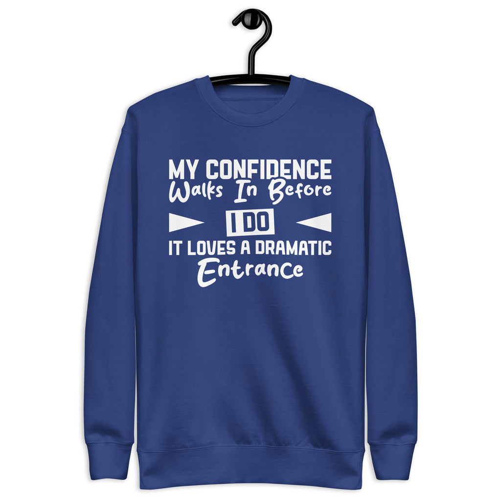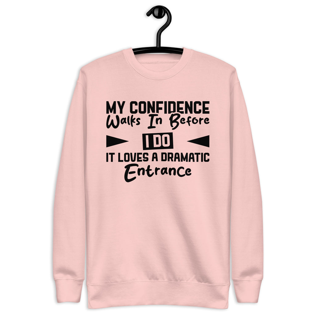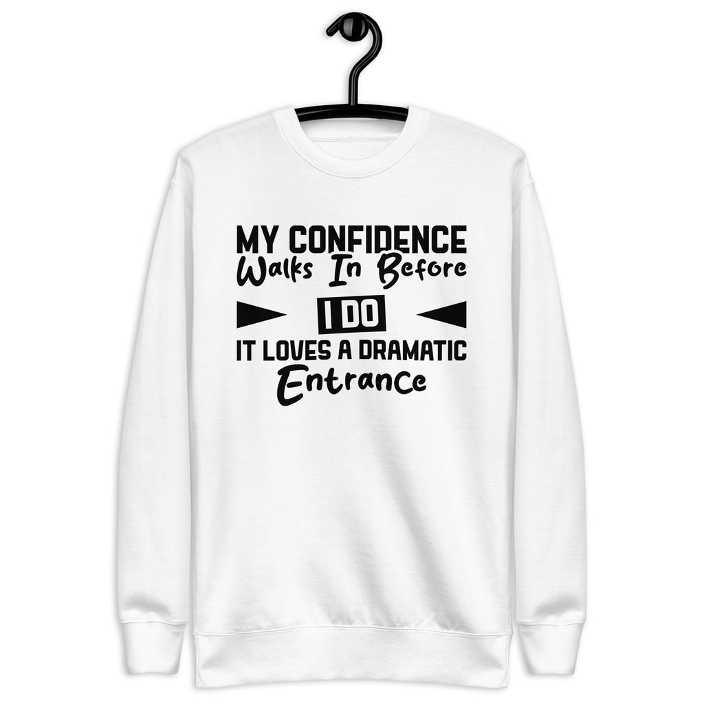 This “My Confidence Walks In Before I Do — It Loves a Dramatic Entrance” sweatshirt is for the ones who don’t just arrive — they enter. Bold, magnetic, and effortlessly stylish, it’s made for those whose presence turns heads and whose energy fills the room before they even say a word.