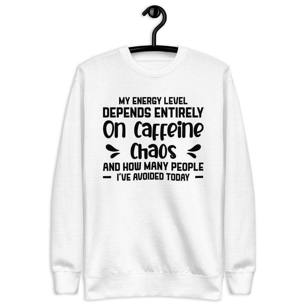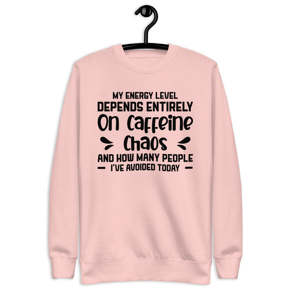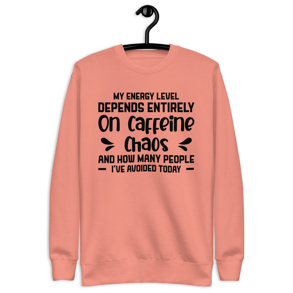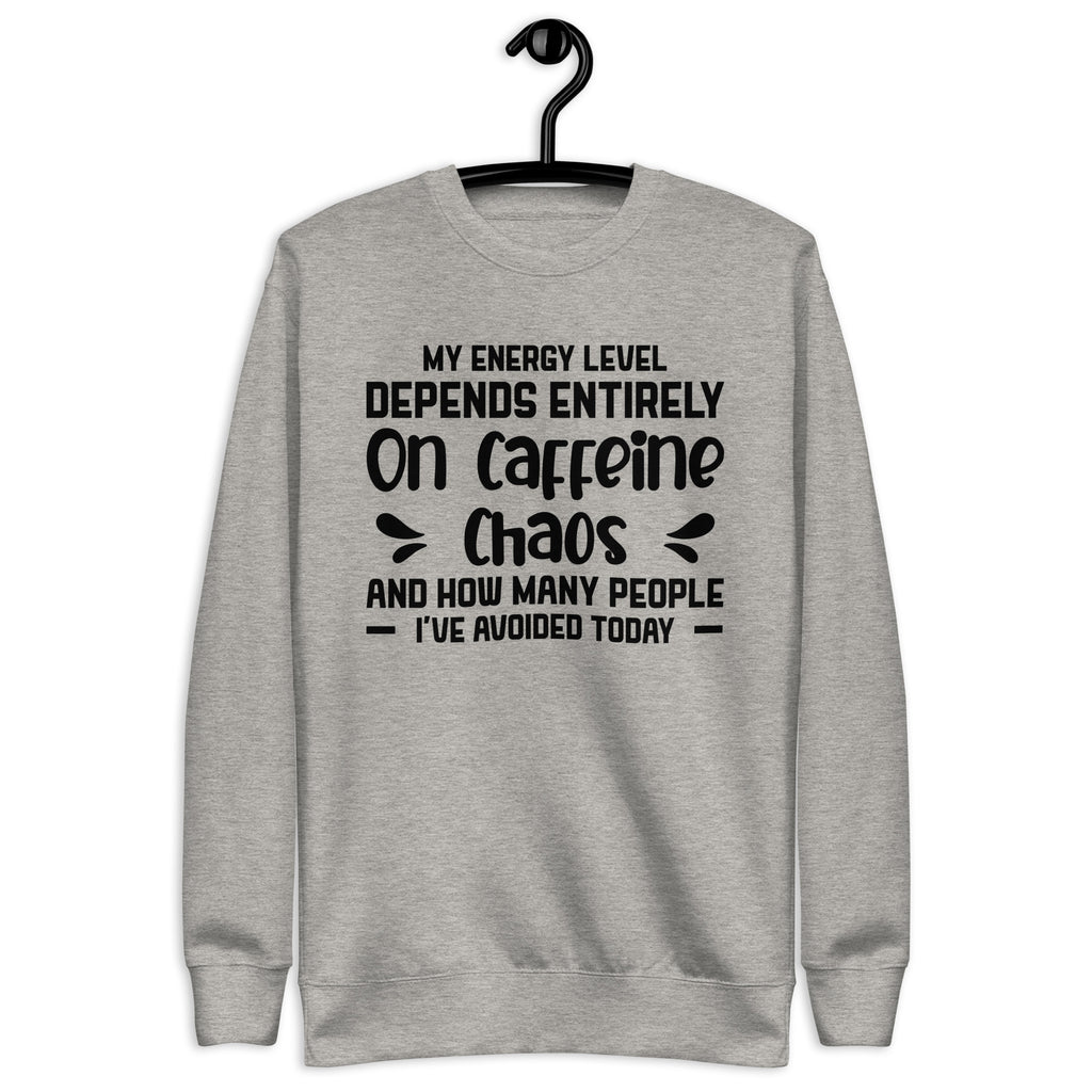 Self-aware, selectively social, and powered by pure caffeine — this “My Energy Level Depends Entirely on Caffeine, Chaos, and How Many People I’ve Avoided Today” sweatshirt captures the exact formula that keeps you functioning. You’re not drained — you’re just conserving energy like a professional.