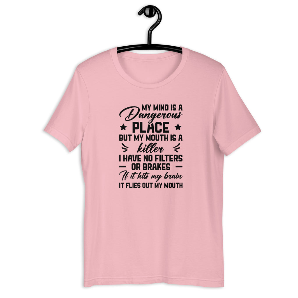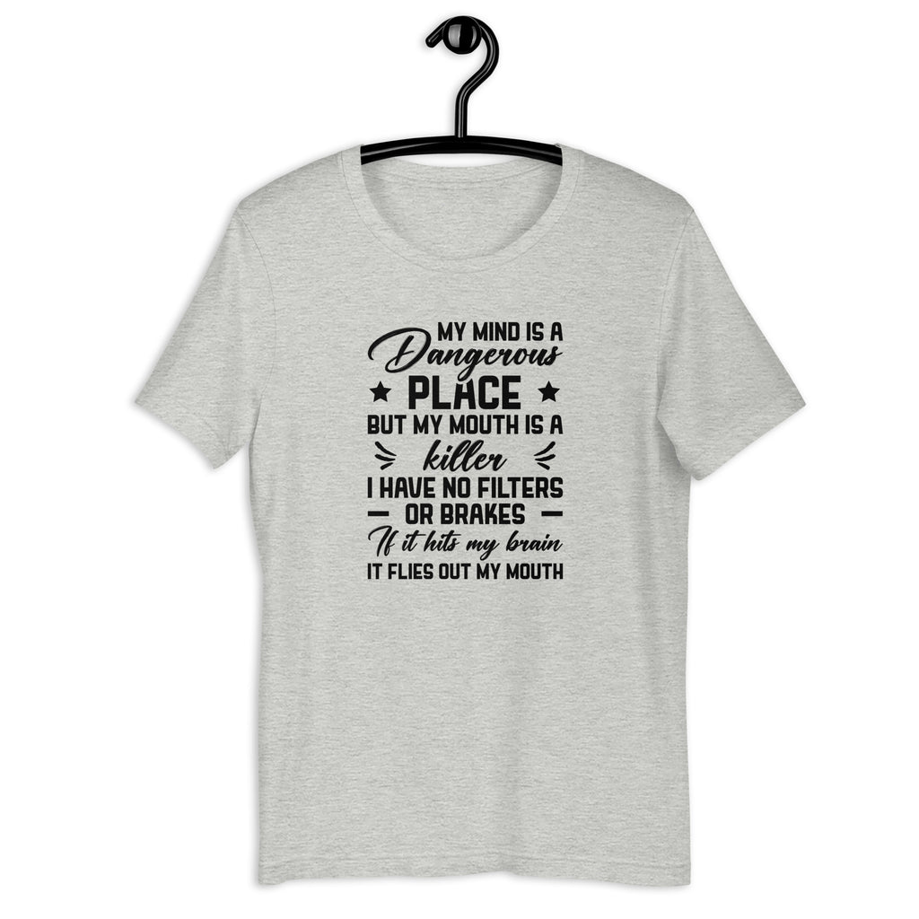 Bold, chaotic, and unapologetically unfiltered. The “My Mind Is a Dangerous Place” t-shirt is made for those who speak before they soften and think without limits. It’s a fearless statement of raw honesty, sharp wit, and zero restraint—because some people weren’t built with filters.