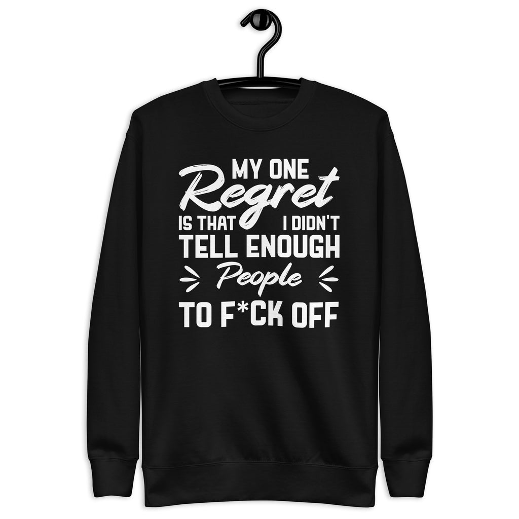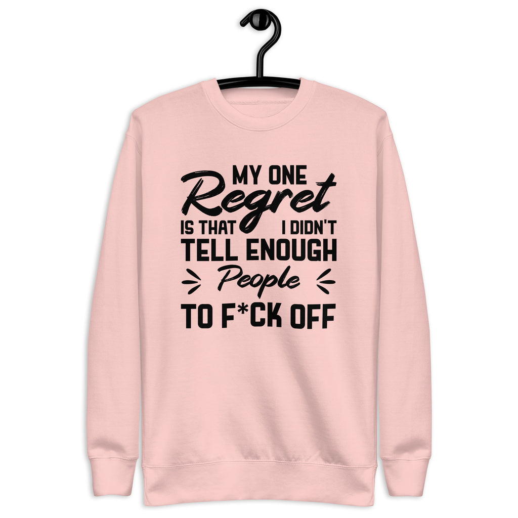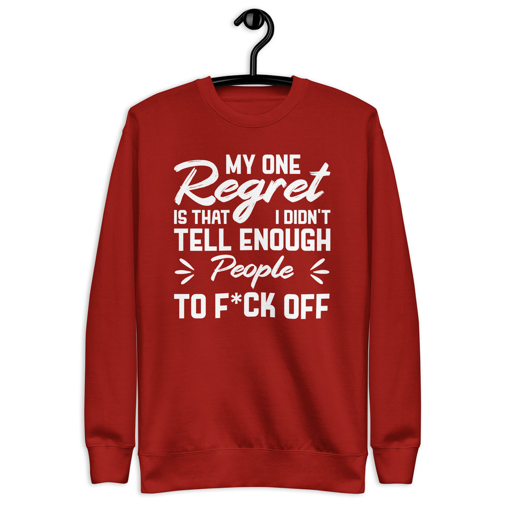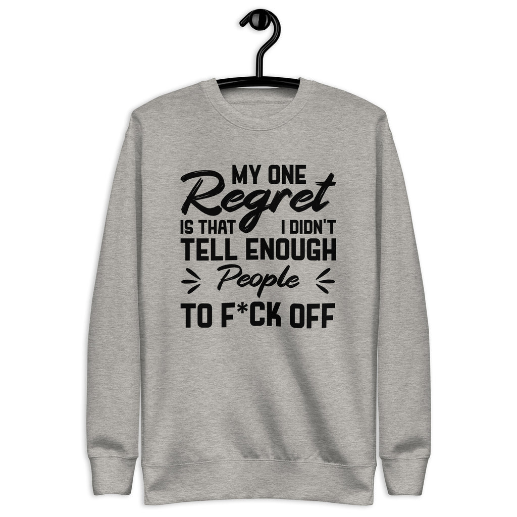 Bold, unapologetic, and brutally honest. The “My One Regret — I Didn’t Tell Enough People to F*ck Off” sweatshirt is made for those who are done sugarcoating life. It delivers sharp humor with zero filter, turning regret into a statement and sarcasm into a lifestyle.