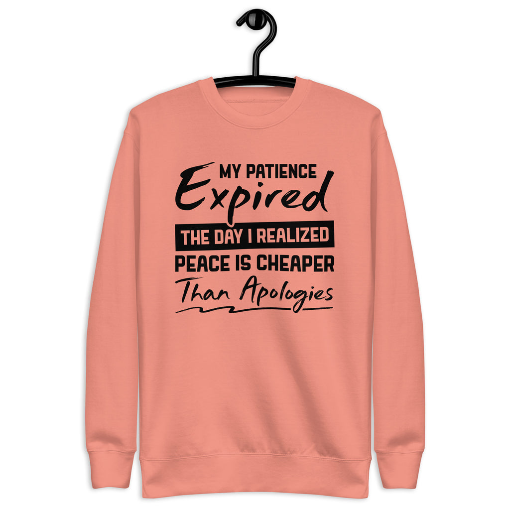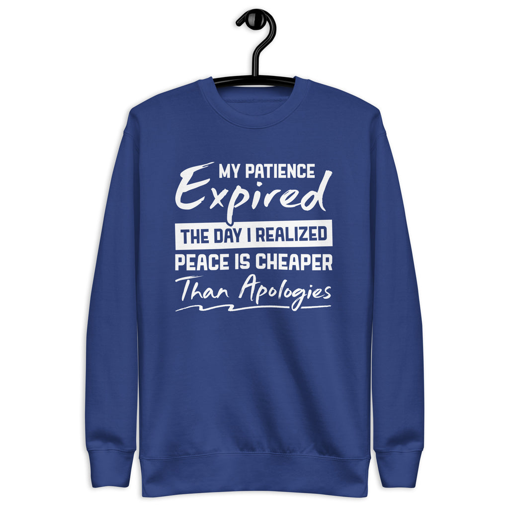 Grounded, wise, and unapologetically intentional — this “My Patience: The Day I Realized Peace Is Cheaper Than Apologies” sweatshirt is made for anyone who values serenity over unnecessary drama. You’ve learned that protecting your peace is far more rewarding than waiting for excuses or justifications.