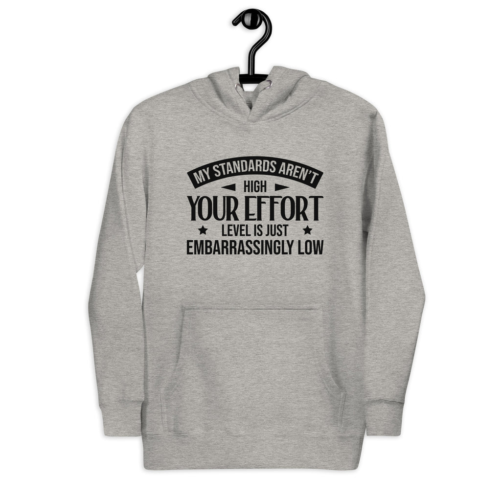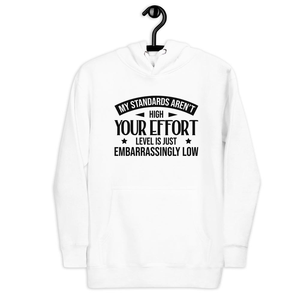 This “My Standards Aren’t High — Your Effort Level Is Just Embarrassingly Low” hoodie is for the ones who know what they want and refuse to settle for less. Sharp, confident, and deliciously honest, it’s made for those who don’t call it “picky” — they call it self-respect.