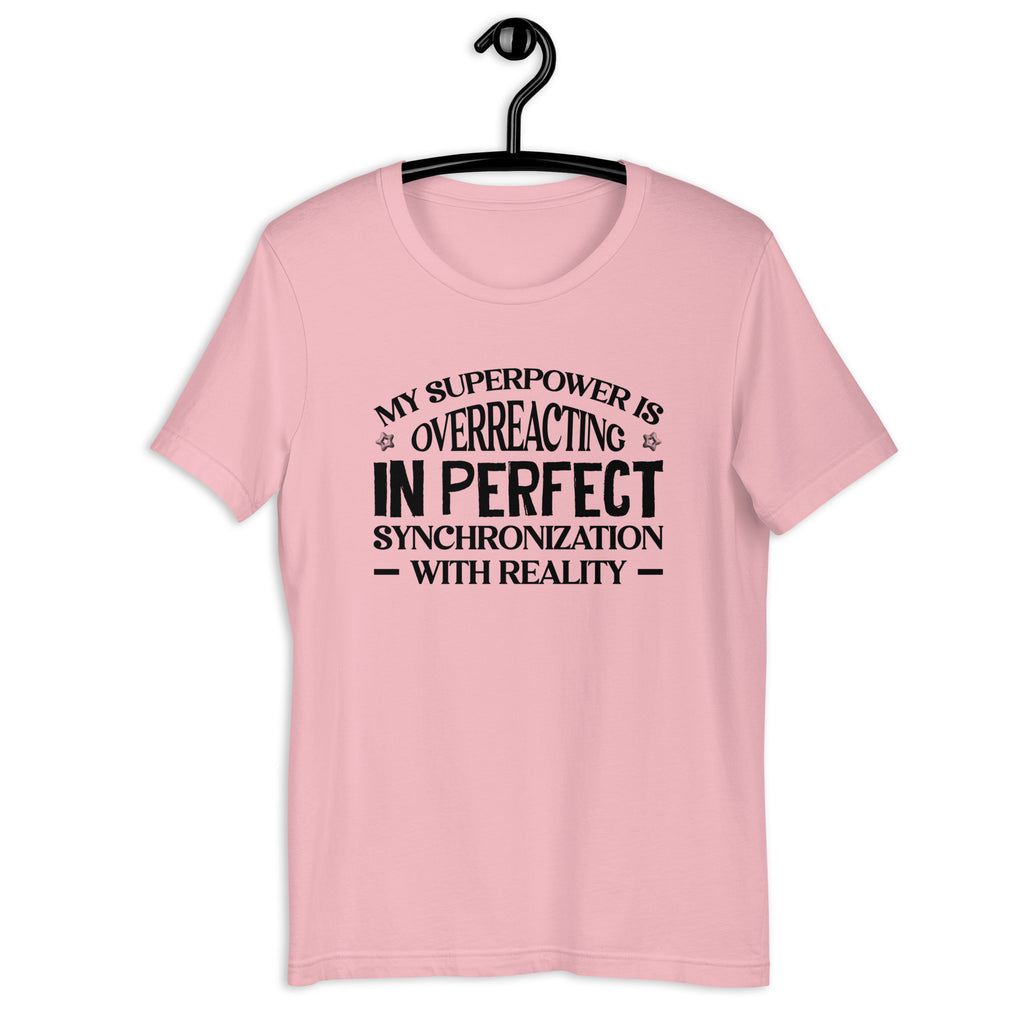 Embrace your dramatic brilliance with the “My Superpower Is Overreacting in Perfect Synchronization with Reality” T-shirt. Perfect for anyone who feels everything at cinematic volume, this tee captures the hilarious truth of reacting a little too much — but always at exactly the right moment.