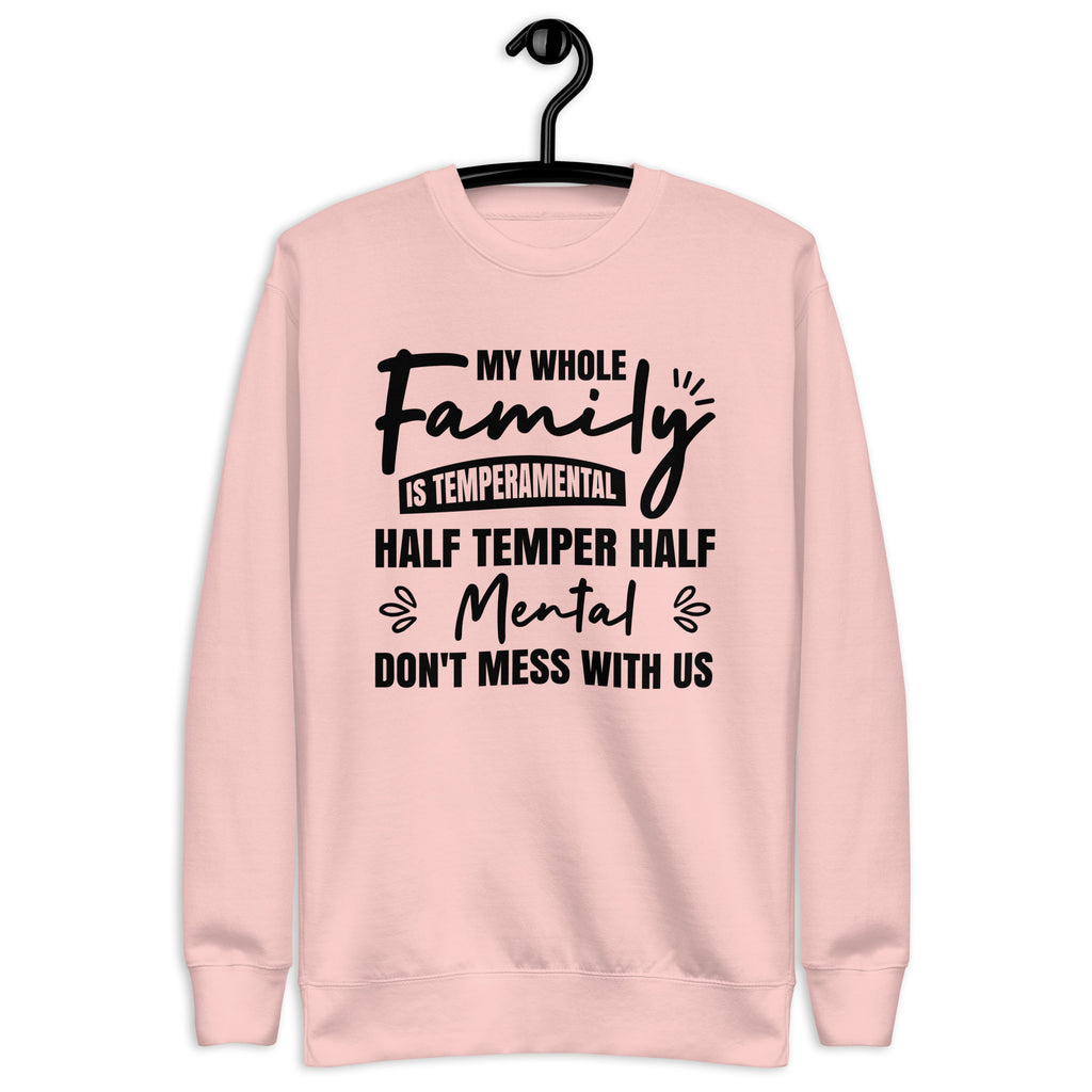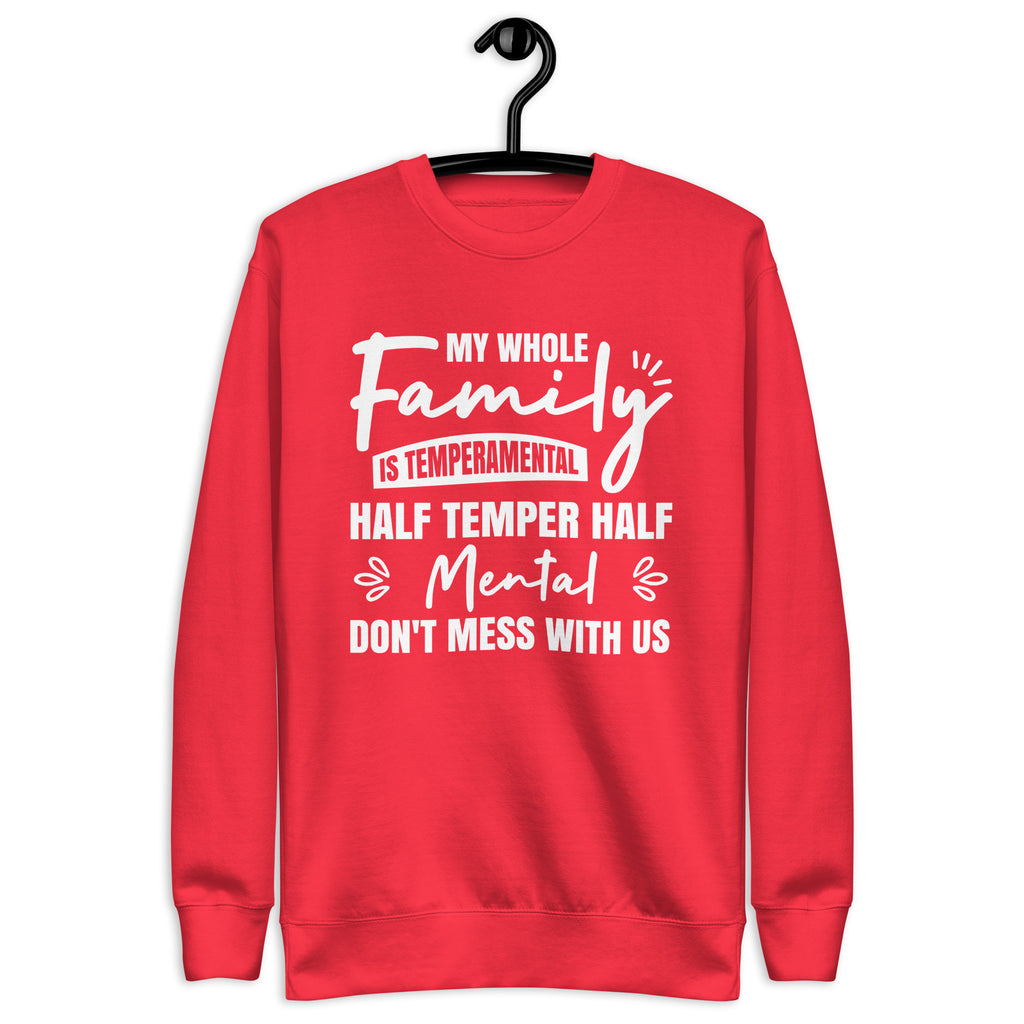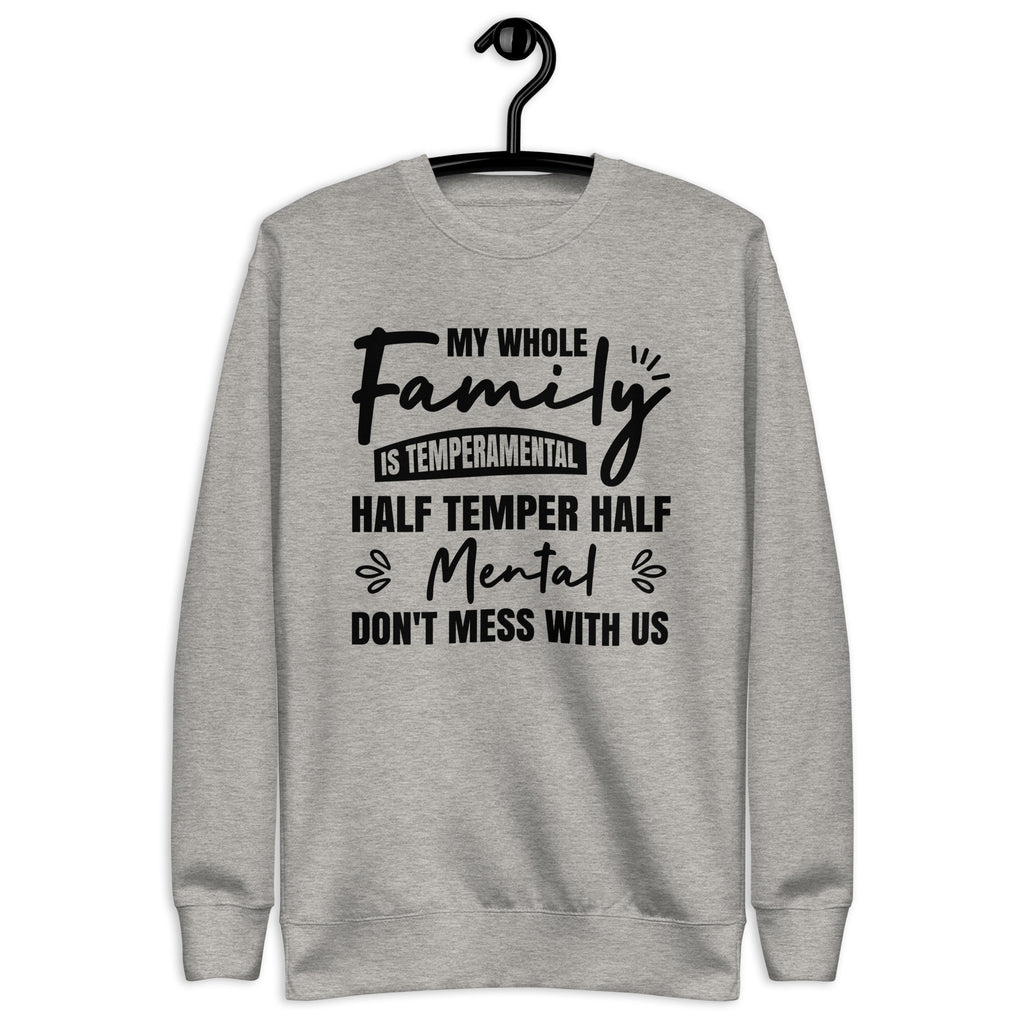 Funny, bold, and full of attitude. The “My Whole Family Is Temperamental — Half Temper, Half Mental. Don’t Mess With Us” sweatshirt is made for those who proudly embrace their quirky, fiery family dynamic. It delivers humor and personality with confidence, letting everyone know your crew is not to be trifled with.