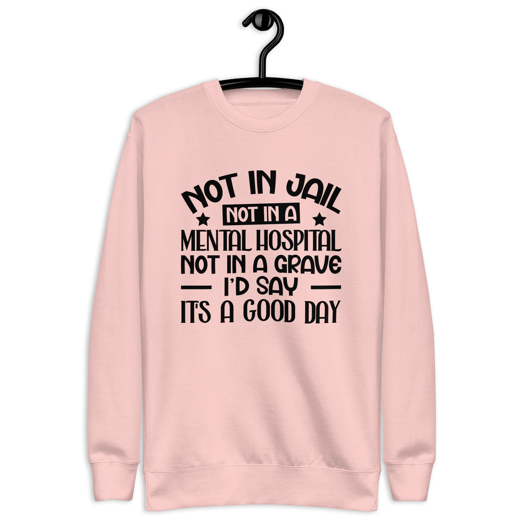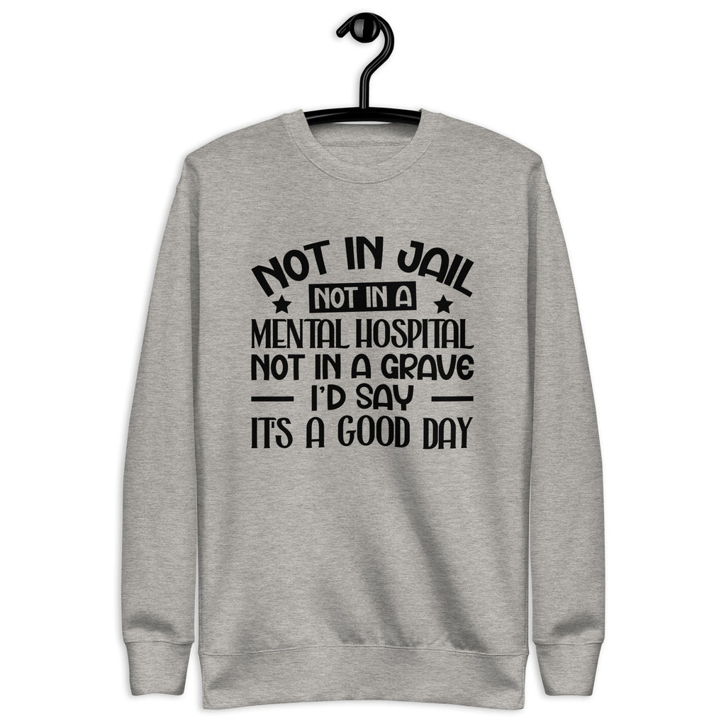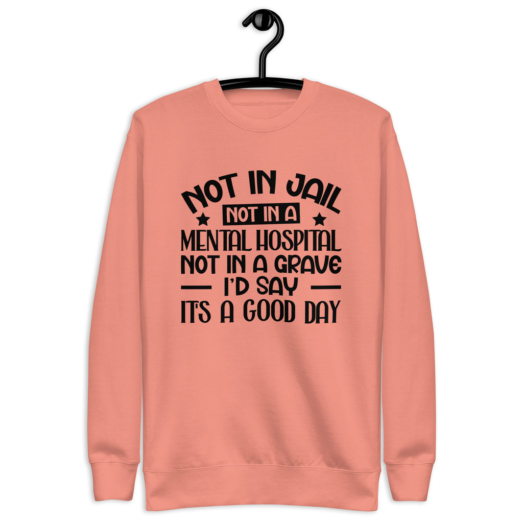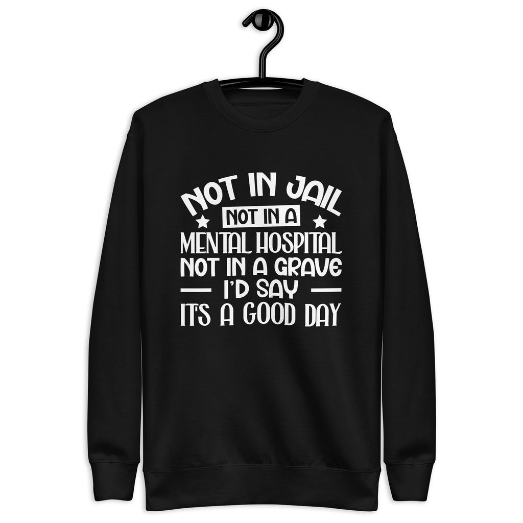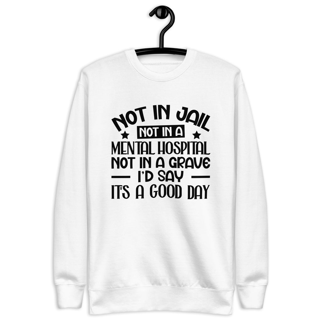 Dark, blunt, and unapologetically honest. The “Not in Jail. Not in a Mental Hospital. Not in a Grave. I’d Say It’s a Good Day” T-shirt is a sharp dose of gallows humor for anyone who measures success by simply surviving the chaos. It’s not negativity—it’s perspective earned the hard way.
