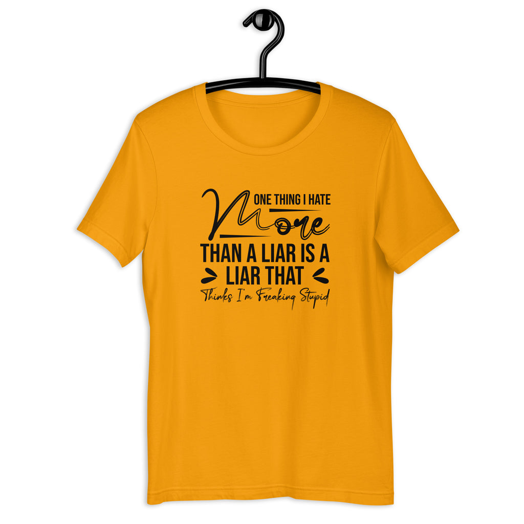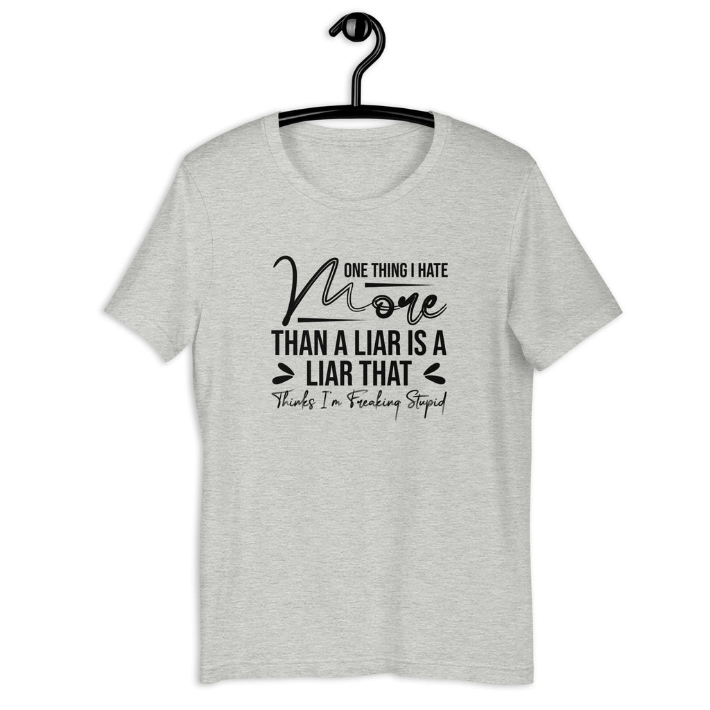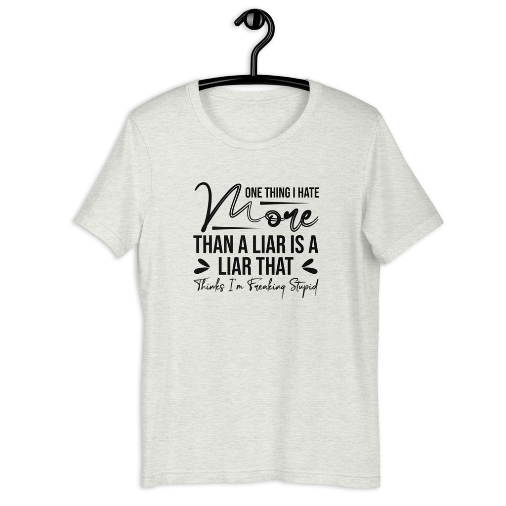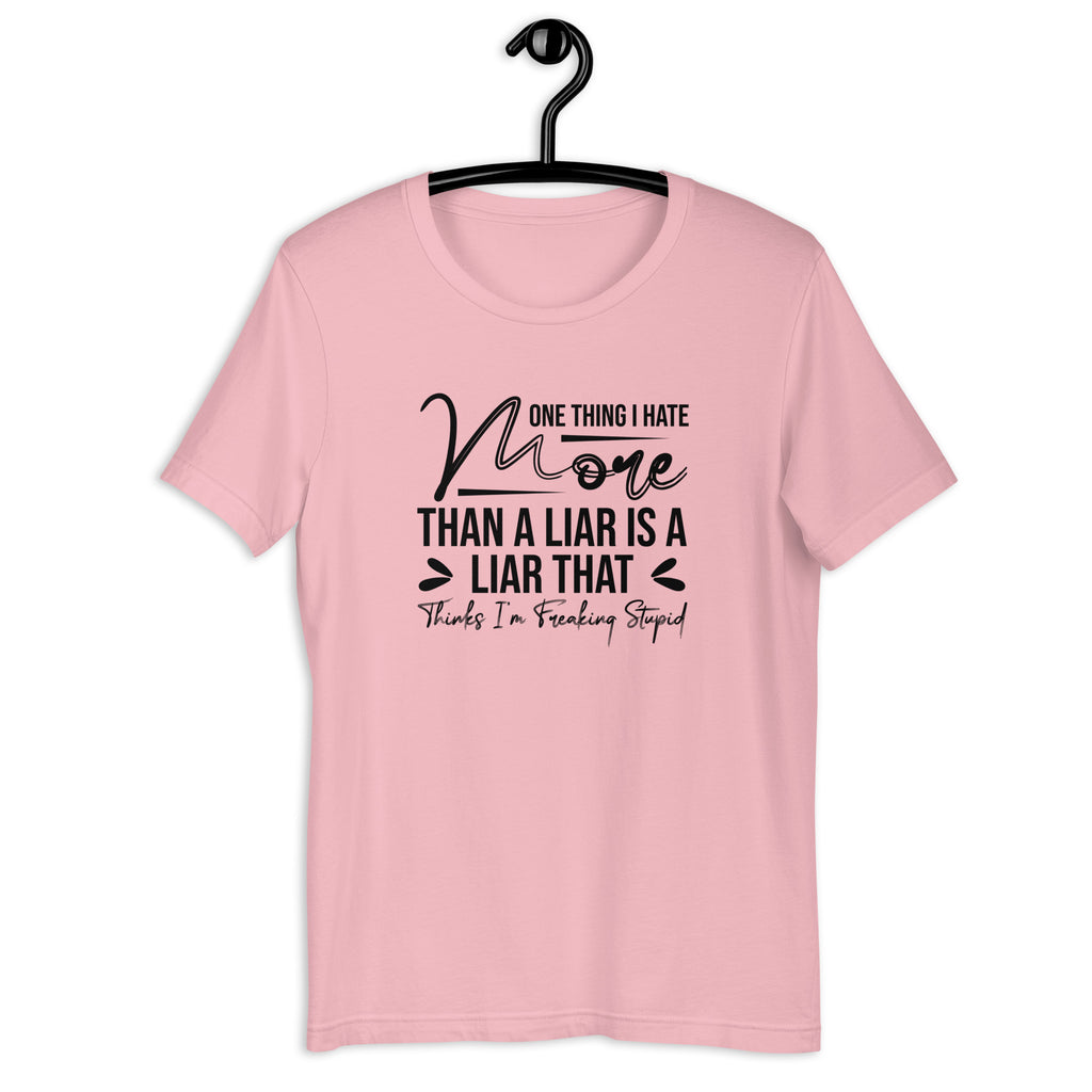 Give everyone a dose of truth with the “One Thing I Hate More Than a Liar Is a Liar That Thinks I’m Freaking Stupid” T-shirt — the perfect tee for anyone who can spot dishonesty from a mile away and refuses to let anyone play them like a fool. This shirt captures that brutally honest moment when lies become insulting, not clever.